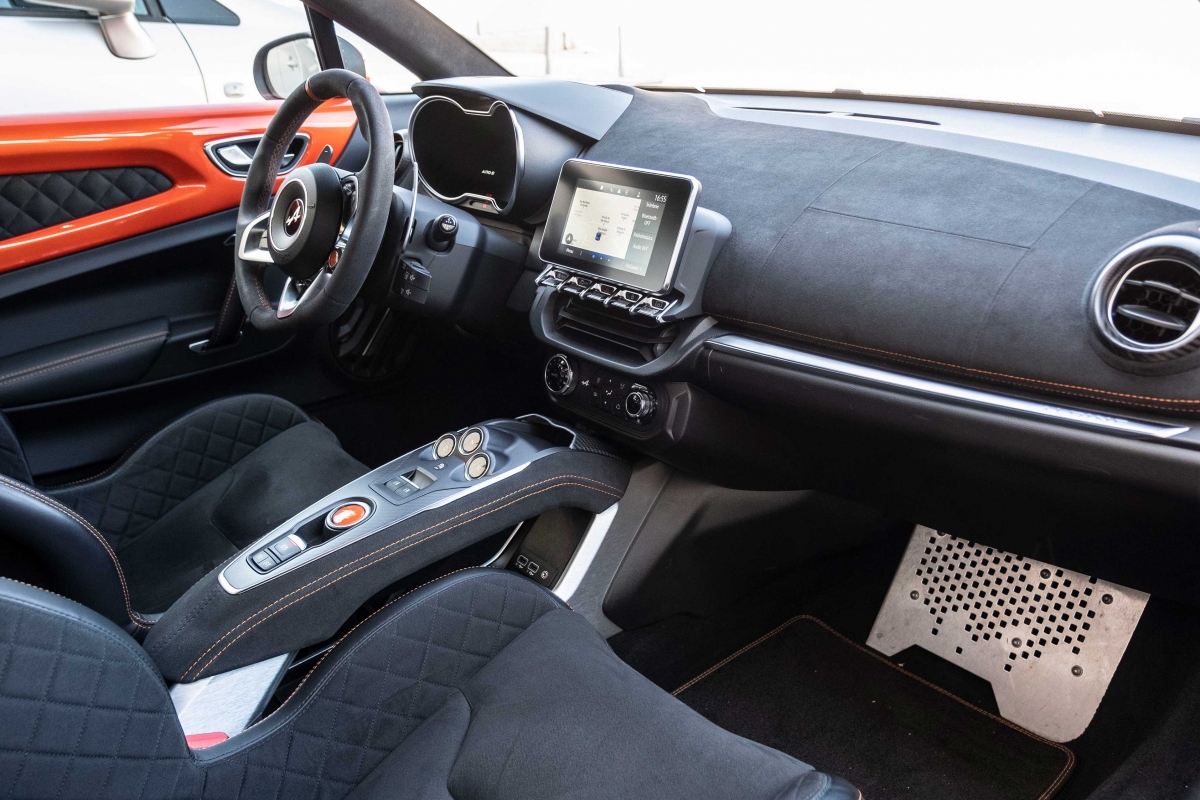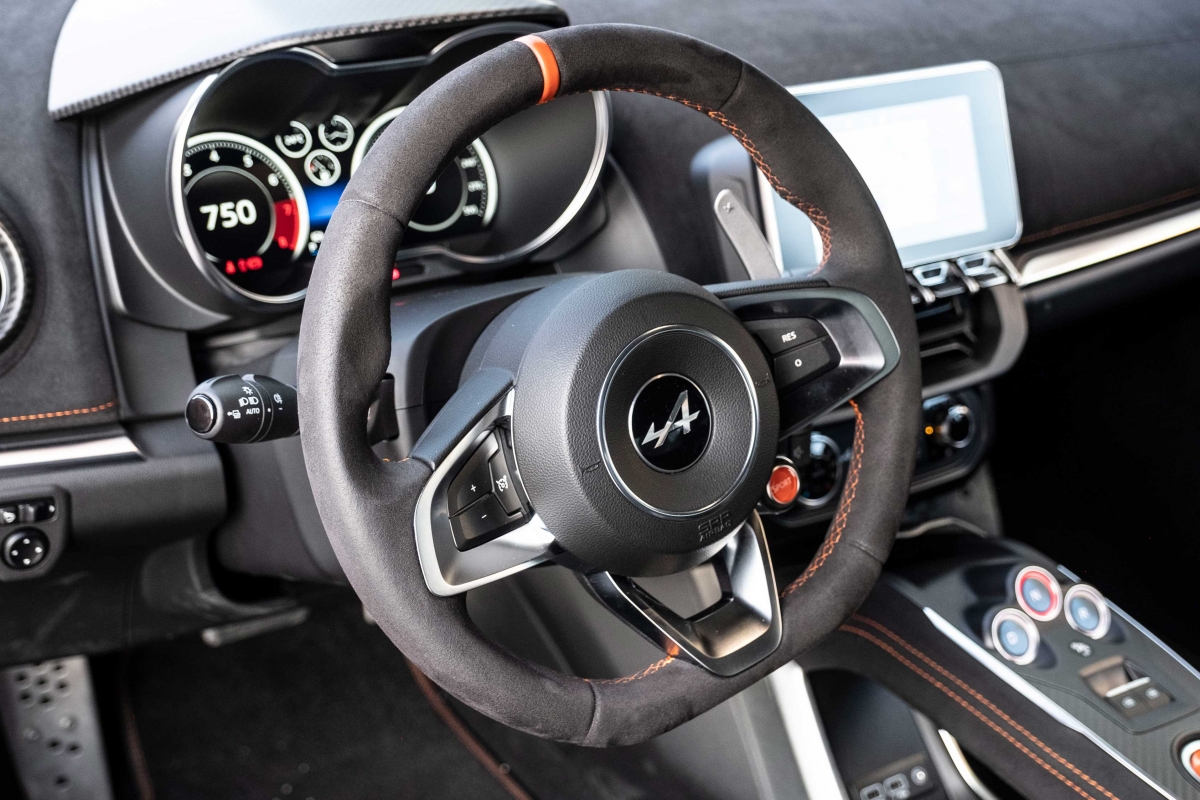 Falta de espaço à parte, no interior é percetível o investimento em materiais de qualidade como é o caso dos bancos, volante, o design da consola central e o sistema de som da marca de alta-fidelidade Focal, também ela francesa e com uma vasta experiência em som para o mercado automóvel. O sistema de infoentretenimento, para além das fucionalidades já habituais, disponibiliza a função de telemetria, que permite gravar todos os dados do desempenho do Alpine. Muito útil para quem gosta de ir fazer trackdays em pista.