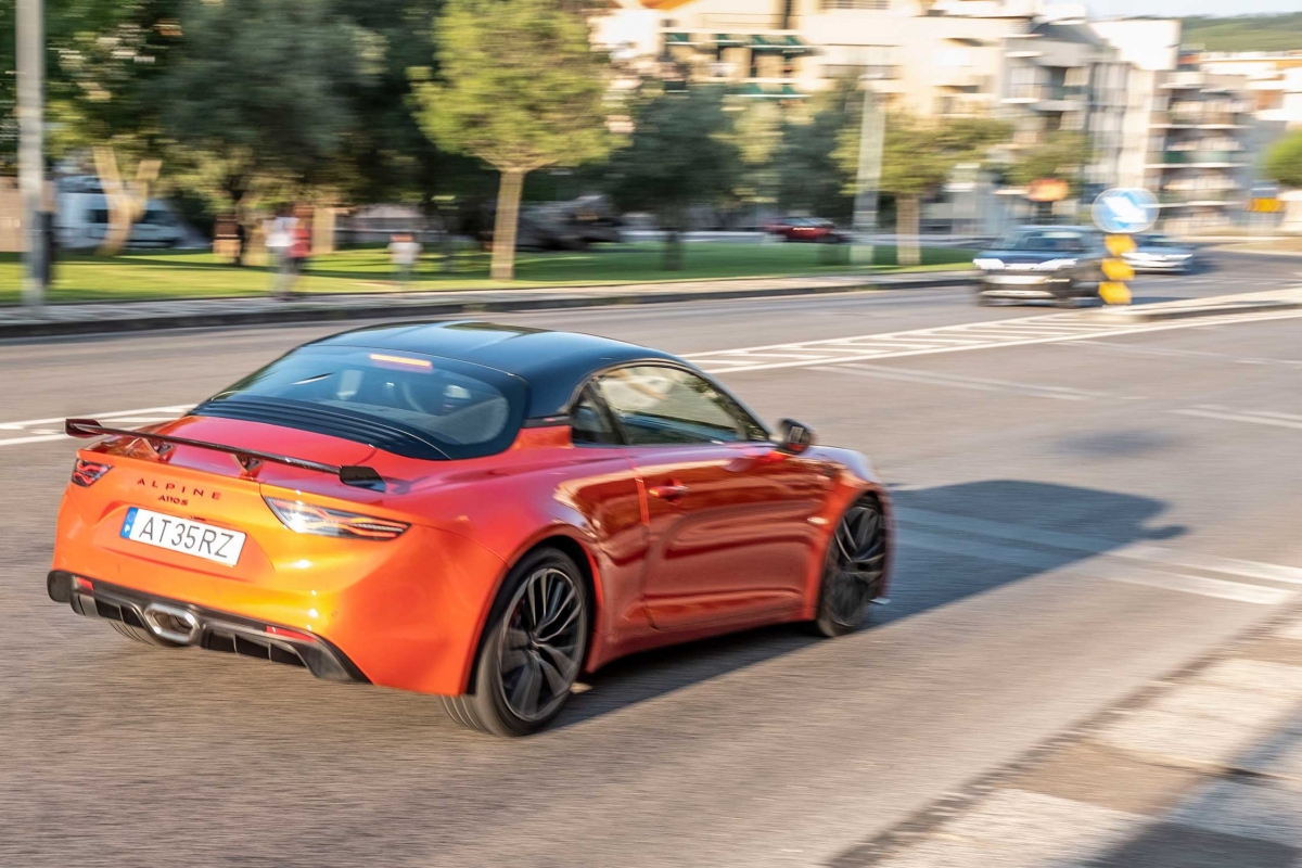 Conduzido de forma mais efusiva, o Alpine é capaz de “devorar” curvas, com uma agilidade desconcertante. Nestas condições verificamos que a quantidade de tração disponibilizada pelos pneus Michelin Pilot Sport 5 parece não ter limite. Aqui, o kit aerodinâmico em carbono – formado por um difusor dianteiro, o fundo plano e um aileron traseiro – também dará alguma ajuda, apesar de o valor máximo de força descendente de 141 quilos ser obtido apenas à velocidade máxima, que nesta versão do A110 S é de 275 km/h. Está sempre à vista, e quando circulamos no dia-a-dia serve apenas para chamar a atenção. Função que cumpre na perfeição a avaliar pela quantidade de pessoas que nos abordaram com curiosidade.