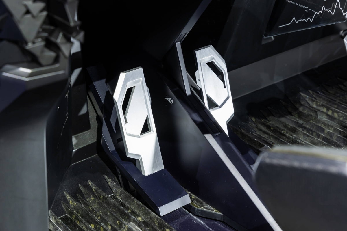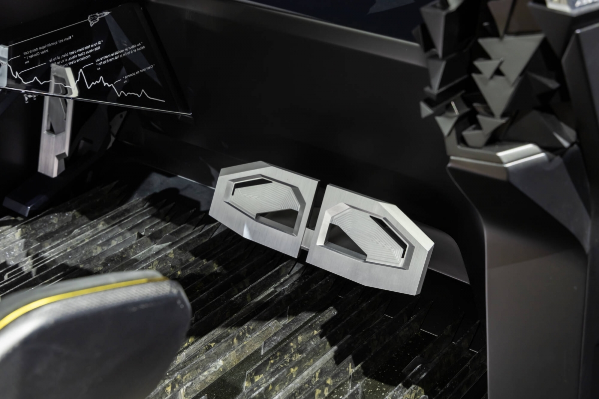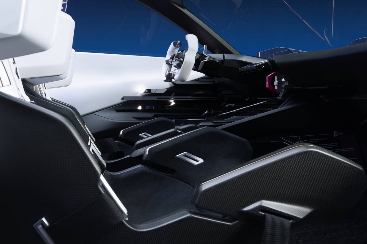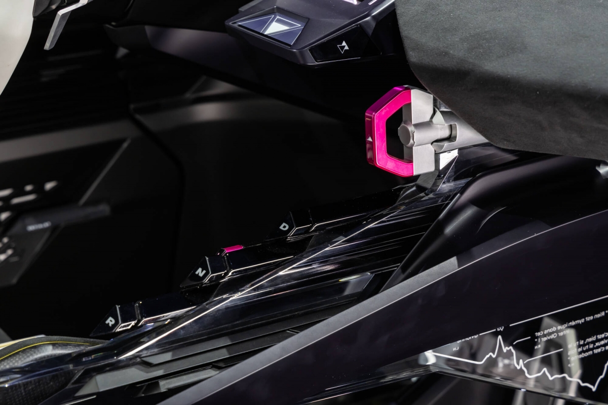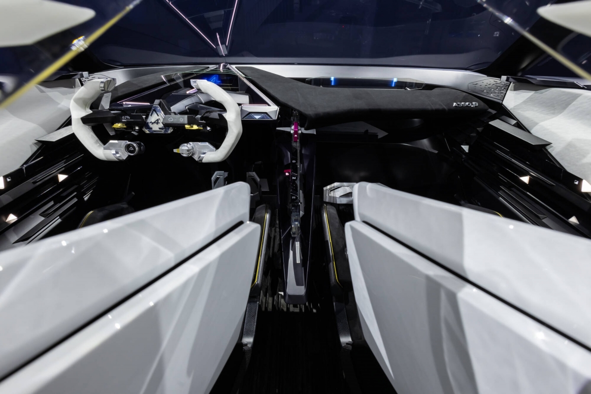 A dupla posição de condução, estilo cockpit, e o volante, também inspirado na Fórmula 1, são centrais no interior. Quando se clica no botão F1, salta da posição lifestyle para a de corridas, os pedais levantam e o banco do condutor rebaixa e torna-se mais envolvente, e o volante adquire o formato de um autentico Fórmula 1. O painel de instrumentos disposto triangularmente ajusta a informação ao grau de importância, da frente para trás.