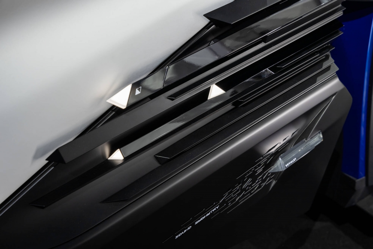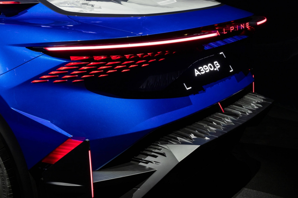 Por fora, a pintura “Bleu Specular” do A390_β parece mudar de tom de azul a cada deslizar em velocidade do carro. As jantes foram inspiradas em velozes patins em linha para o gelo, o que transmite uma sensação dinâmica ainda maior. E os logos Alpine iluminados, num tipo de letra de inspiração alienígena, acrescentam o caráter da marca. E ainda triângulos iluminados chamados ‘Cosmic Dust’, no para-choques à frente e atrás, remetem para um cometa a entrar na atmosfera terrestre.