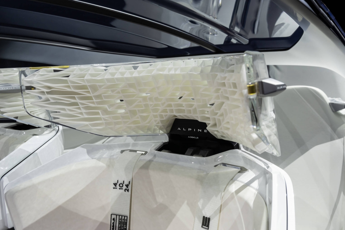 A Alpine inspirou o nome da marca, preparada para competição, nas estradas dos Alpes franceses, onde muito se divertiu o seu fundador, Jean Rédélé, nas corridas ao volante de um Renault 4CV. É neste cenário glaciar que, 69 anos depois, surgiu inspiração para o interior do A390_β, o primeiro 100% elétrico fastback desportivo da Alpine.