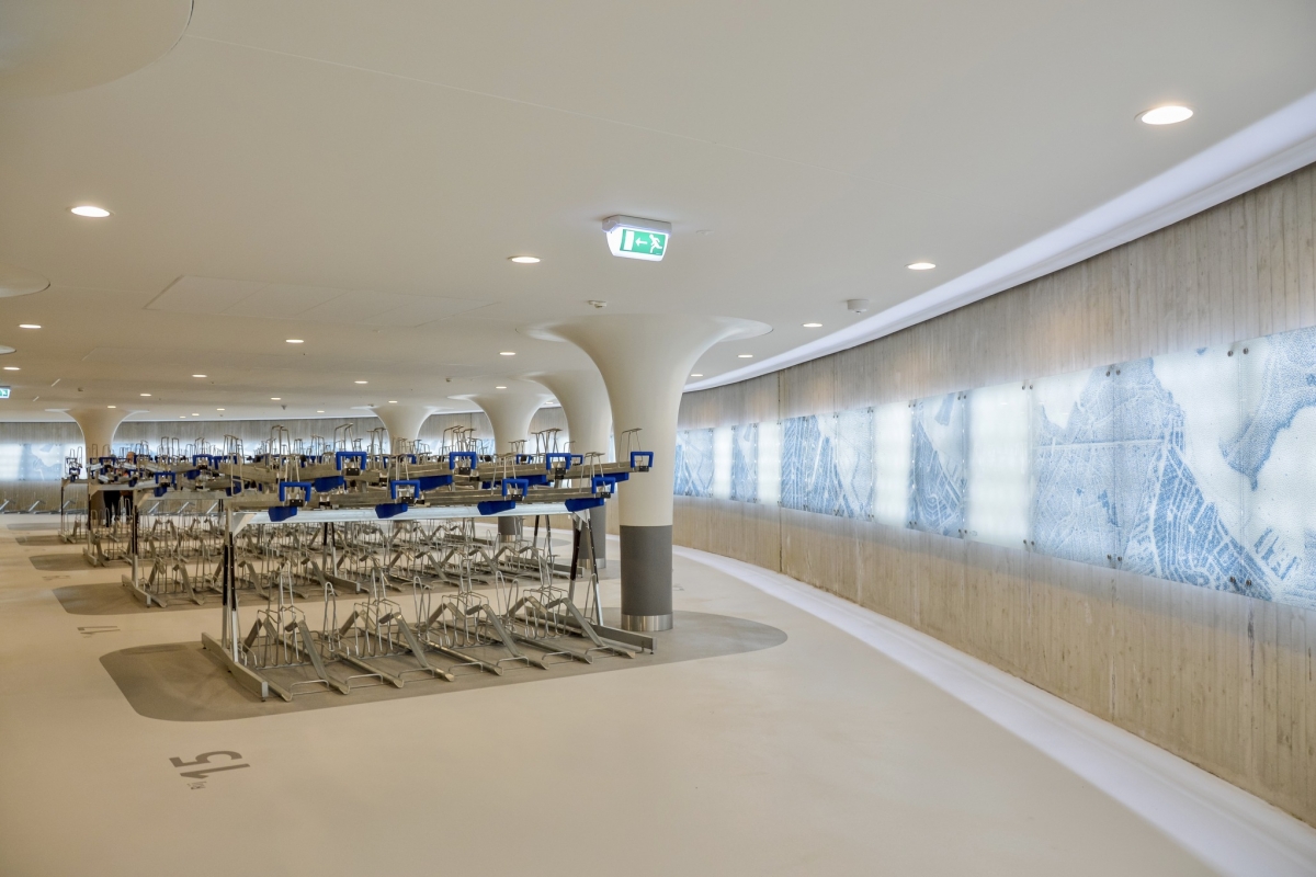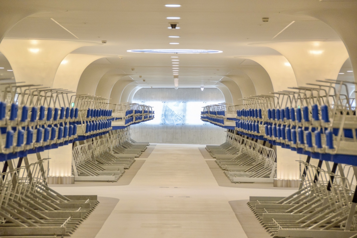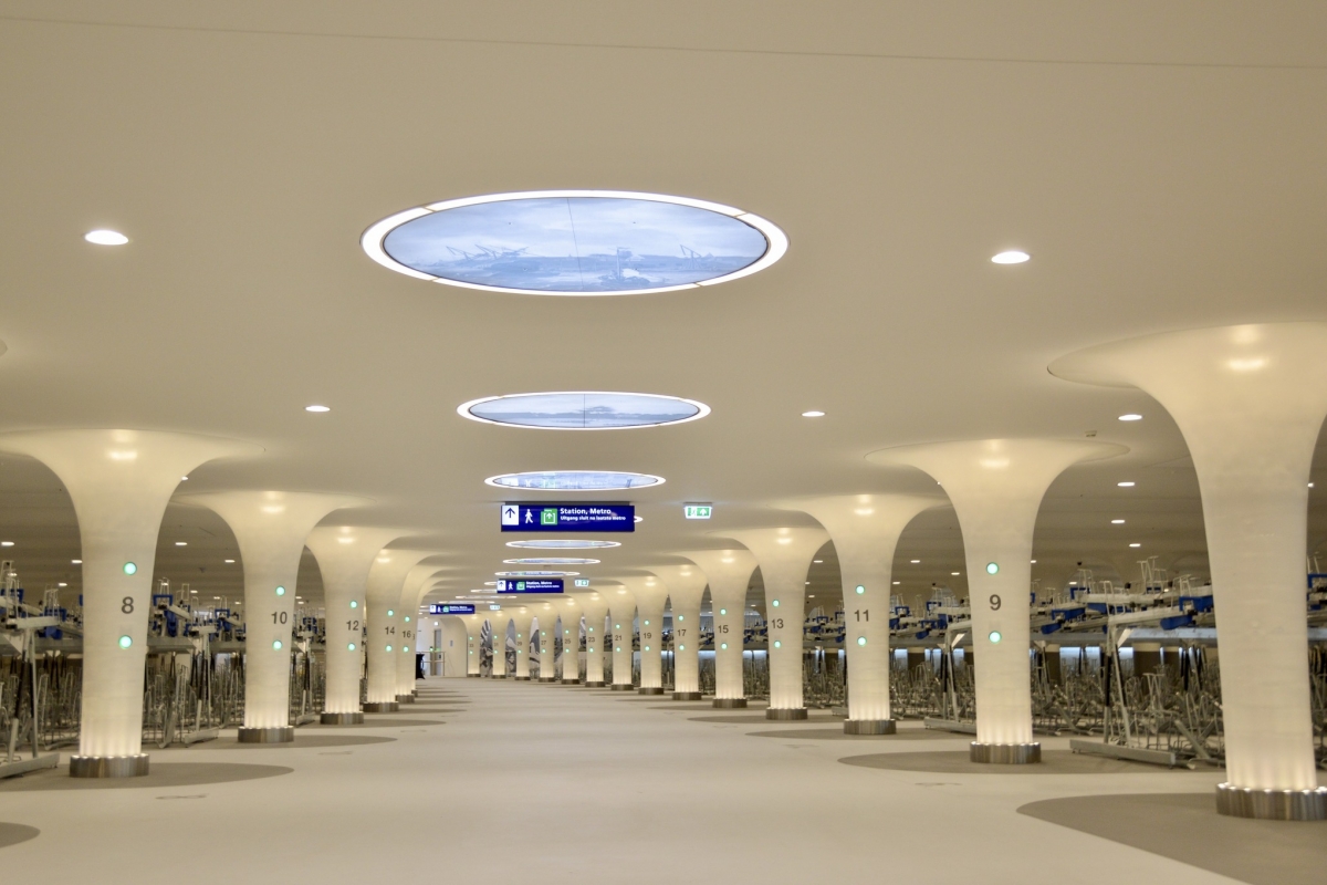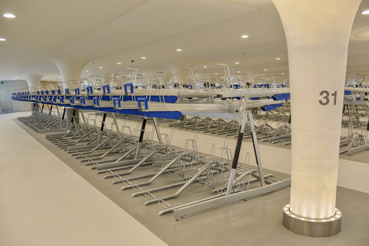 Ficam debaixo de água, na zona do porto marítimo, junto à Estação Central. Um deles com capacidade para 7.000, e o outro para 4.000 bicicletas. Em conjunto poderão albergar 11.000 velocípedes a pedal, e até tem oficina onde é possível fazer reparações.