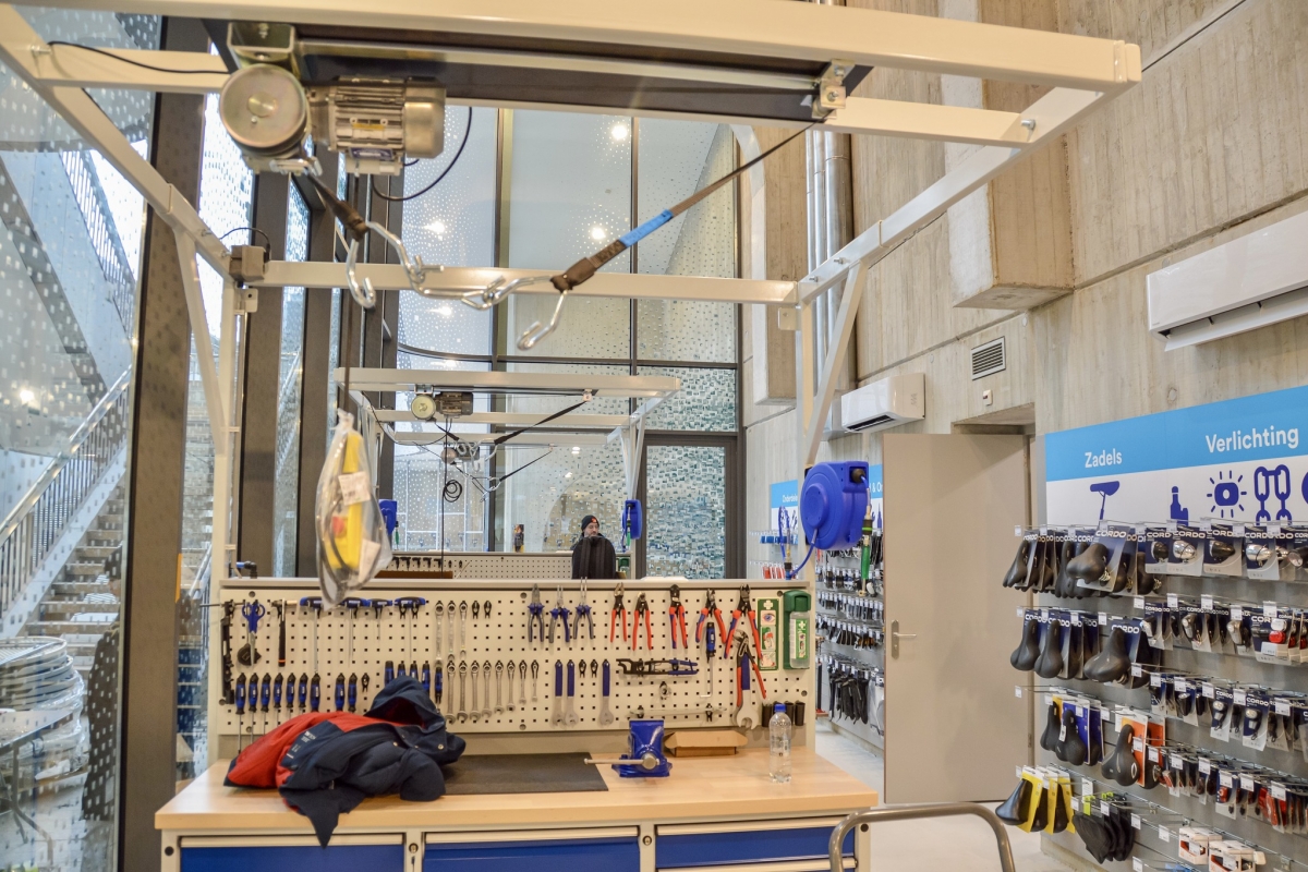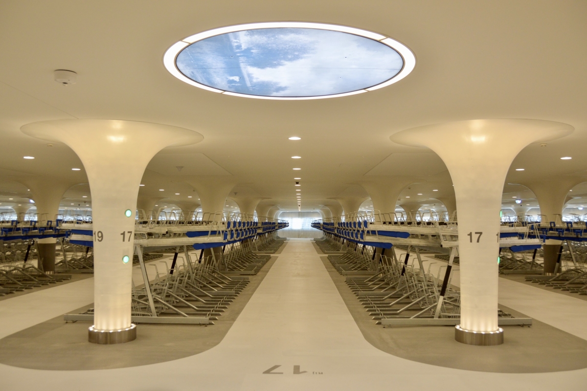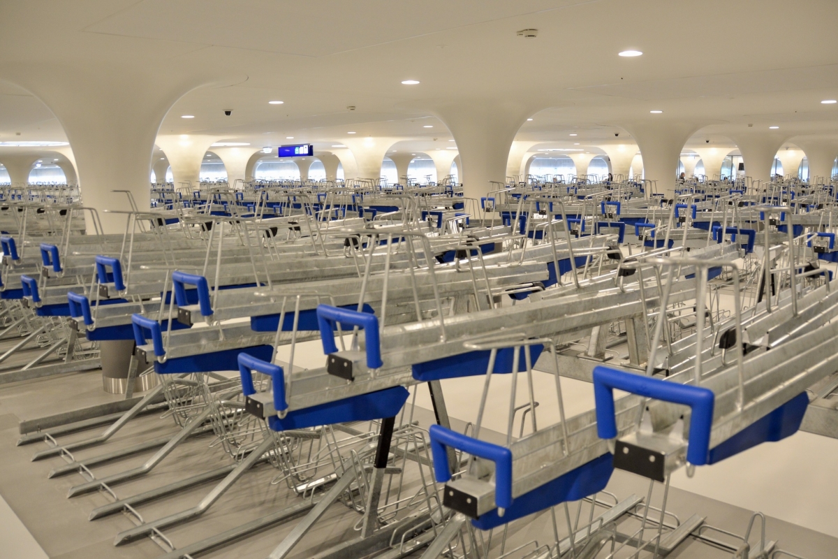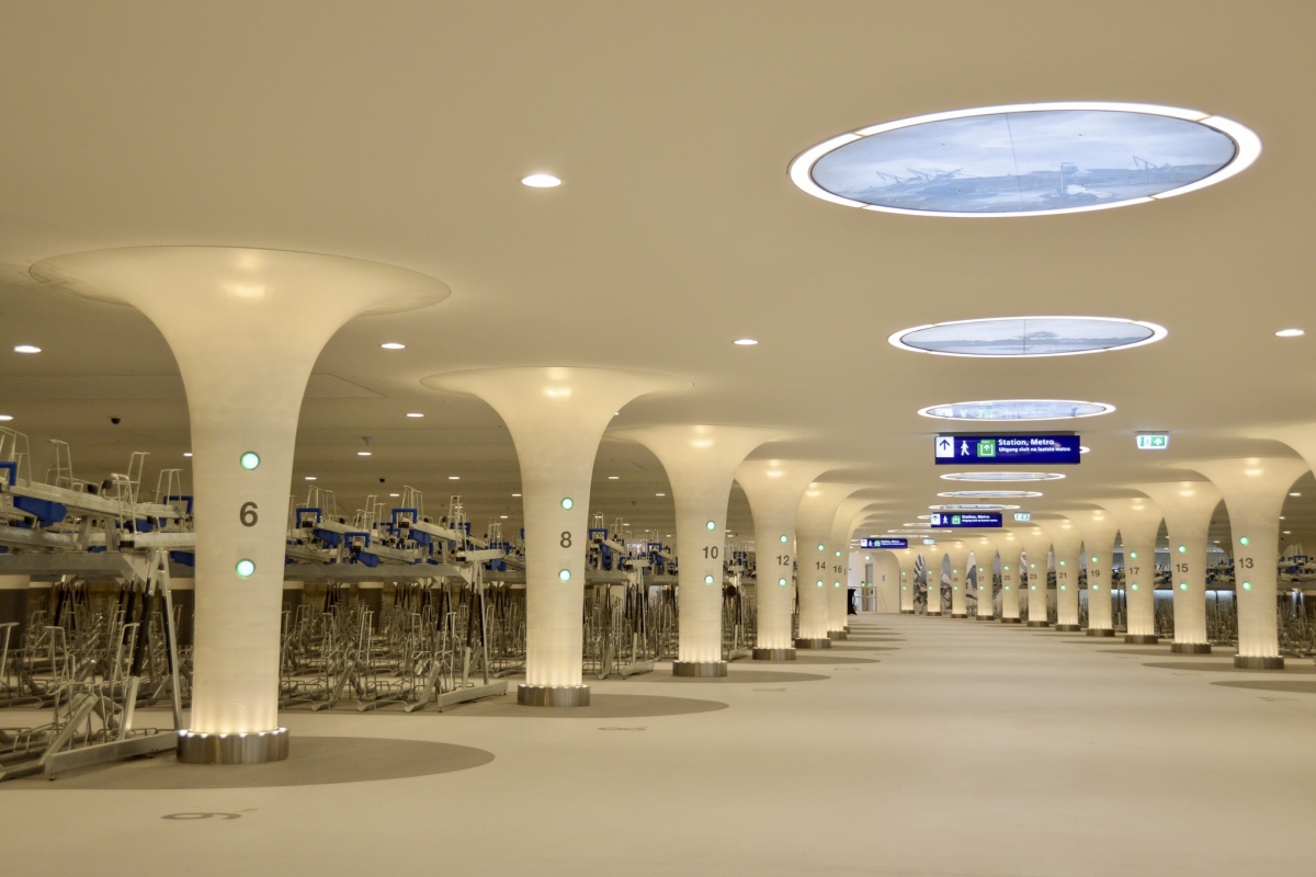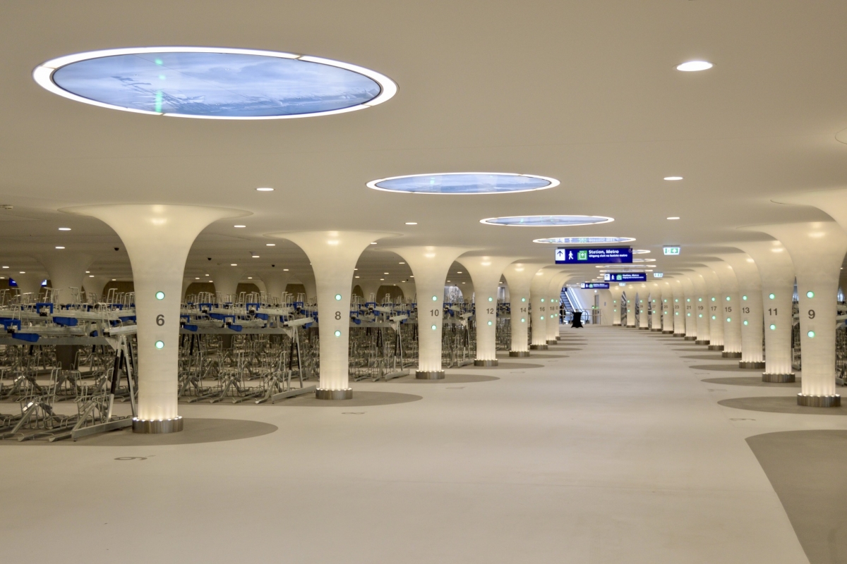 Ficam debaixo de água, na zona do porto marítimo, junto à Estação Central. Um deles com capacidade para 7.000, e o outro para 4.000 bicicletas. Em conjunto poderão albergar 11.000 velocípedes a pedal, e até tem oficina onde é possível fazer reparações.