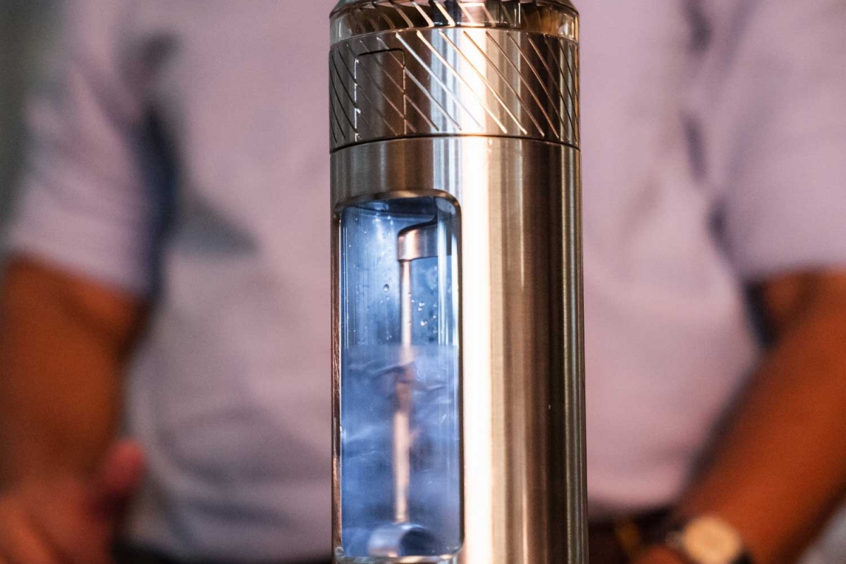Através de uma janela no corpo é possível observar a mistura a decorrer no interior do “Martini Mixer” com a ajuda de iluminação LED. O processo dura 15 segundos e a bateria recarregável tem uma duração de 120 minutos, o que dará para cerca de 500 martinis.