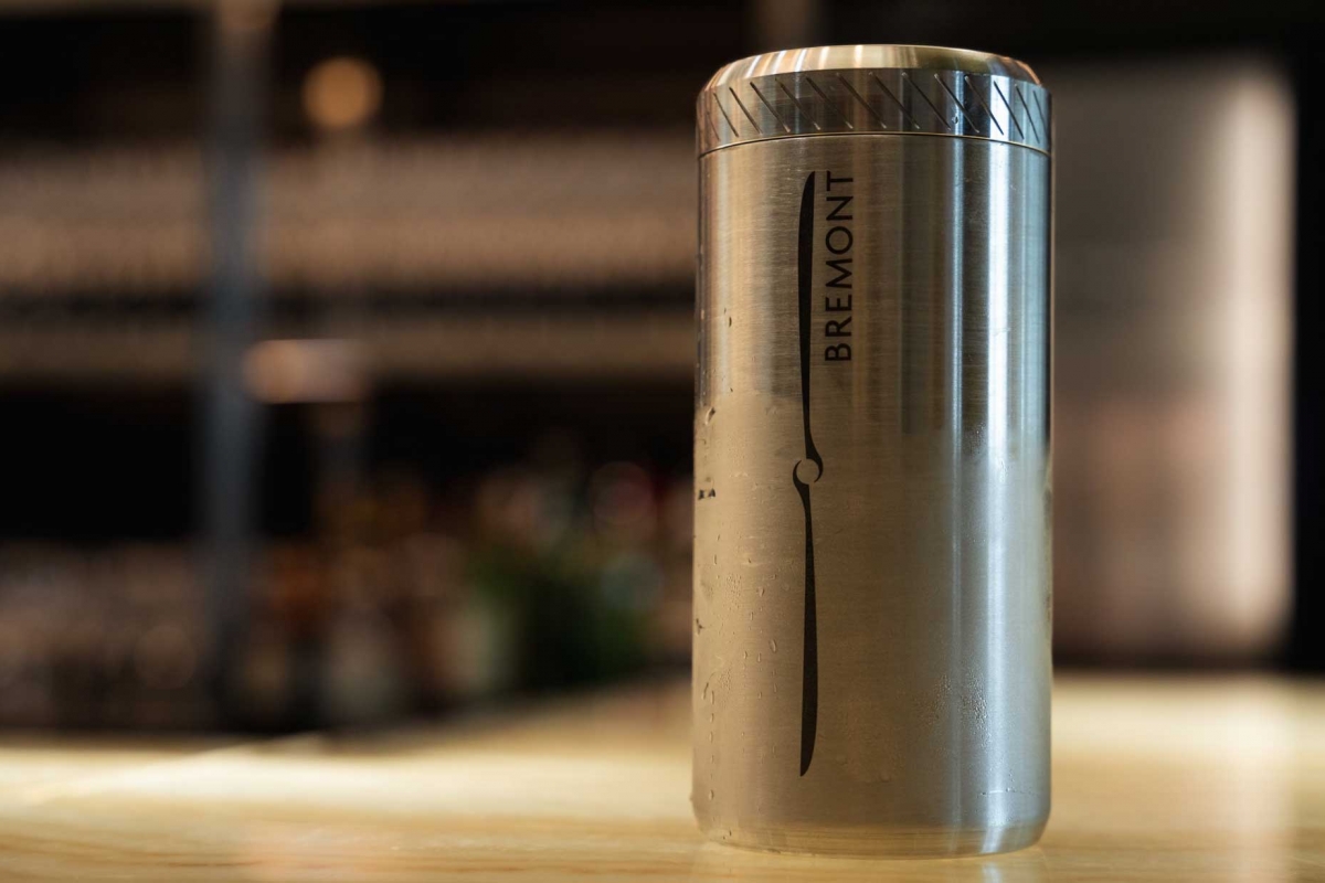 É produzido em colaboração com a British Airways, o fabricante de relógios de luxo Bremont, e o premiado mixologista Mr Lyan. O “Martini Mixer” motorizado tem uma turbina decorativa inspirada nos aviões comerciais, montada no topo de um corpo maquinado em aço certificado para a indústria hoteleira. No seu interior está o misturador motorizado, concebido para rodar entre as 120-160 rpm, a rotação ideal para a oxigenação, diluição e arrefecimento criarem o cocktail perfeito.