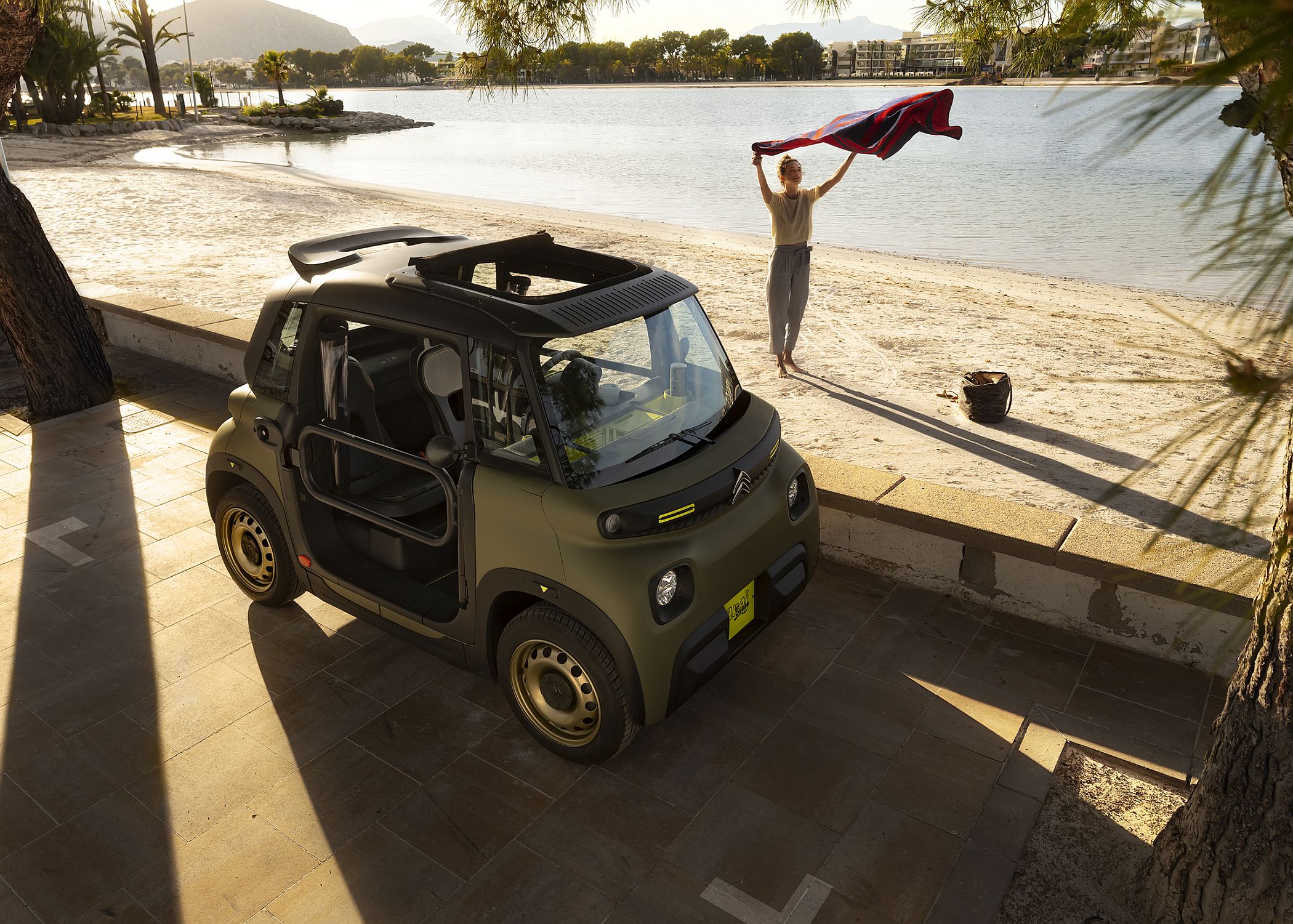 Esta nova edição limitada do Citroën My Ami Buggy apresenta características idênticas às da primeira, como é o caso da ausência de portas e do tejadilho, juntando-se ainda a carroçaria de cor cáqui, pontuada por elementos em amarelo ácido. Uma série de decorações reforçam o carácter aventureiro único, como os guarda-lamas, os para-choques dianteiro e traseiro e as jantes douradas e exclusivas.