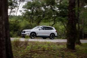 A entrega da potência é linear, se assim o desejarmos, com o modo de condução Eco Pro a fazer sobressair a eficiência ao limitar a entrega da potência, embora tenha dado a impressão que a disponibilidade para retomar altos ritmos está sempre a um pequeno impulso do pé direito. Ao ativar o modo ‘Sport’, torna-se bem mais responsivo, movendo com facilidade o iX3 para velocidades elevadas ou permitindo retomas eficazes em estradas sinuosas. Para primeira abordagem, parece-nos um elétrico muito interessante, capaz de agradar aos habituais clientes da marca bávara. Durante a condução, o sistema de regeneração provou ser eficaz, aliando-se aos conselhos apresentados no painel de instrumentos digital para que o condutor seja mais poupado, por exemplo, ‘pedindo-lhe’ que levante o pé na aproximação a uma rotunda.