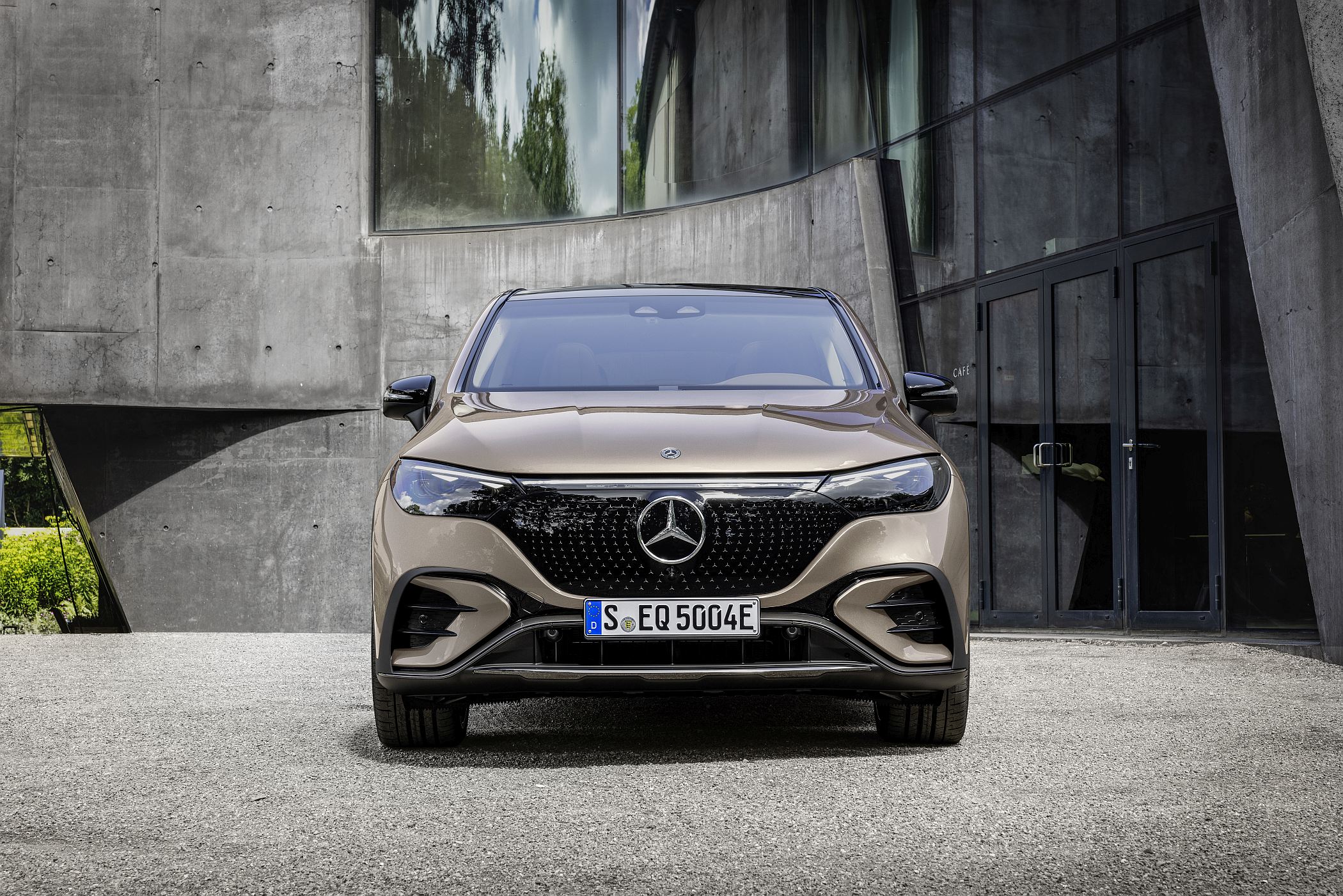 Quanto ao design, a marca não foge à imagem de família que foi apresentada com os anteriores modelos EQ, nomeadamente a dianteira com um painel preto que pode ser embelezado com um padrão de estrelas Mercedes e acabamento brilhante, sendo que de série conta com painel preto brilhante e faróis LED High Performance. Também aqui há opcionalmente tecnologia LED Digital Light com controlo automático das luzes de máximos e feixe adaptativo com 1.3 milhões de pixels por cada ótica. Esta tecnologia pode ser associada à barra horizontal em LED entre os dois faróis, também opcional.