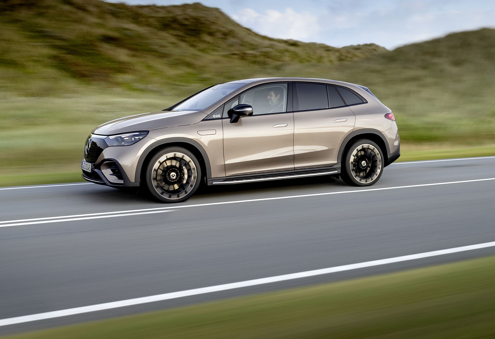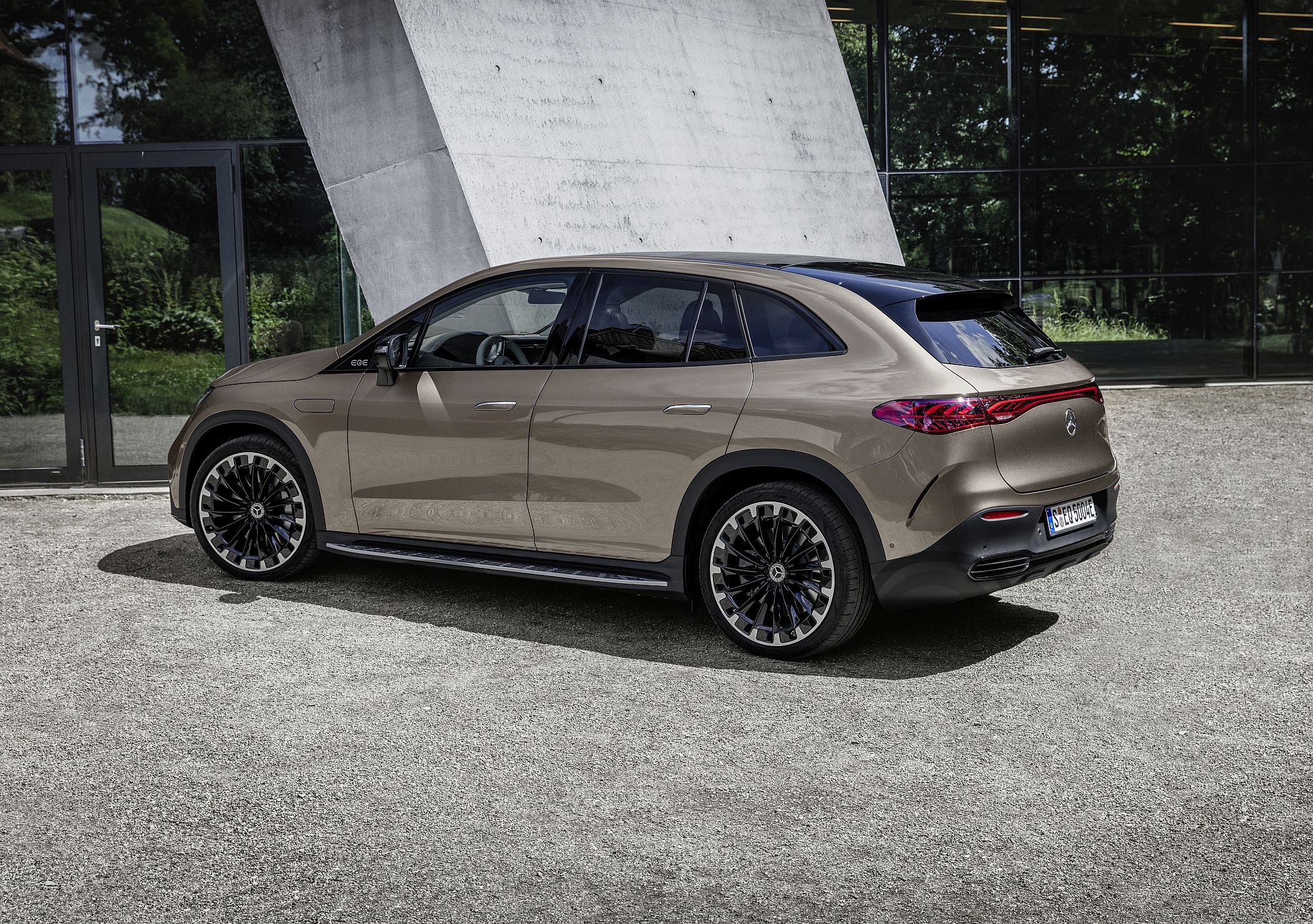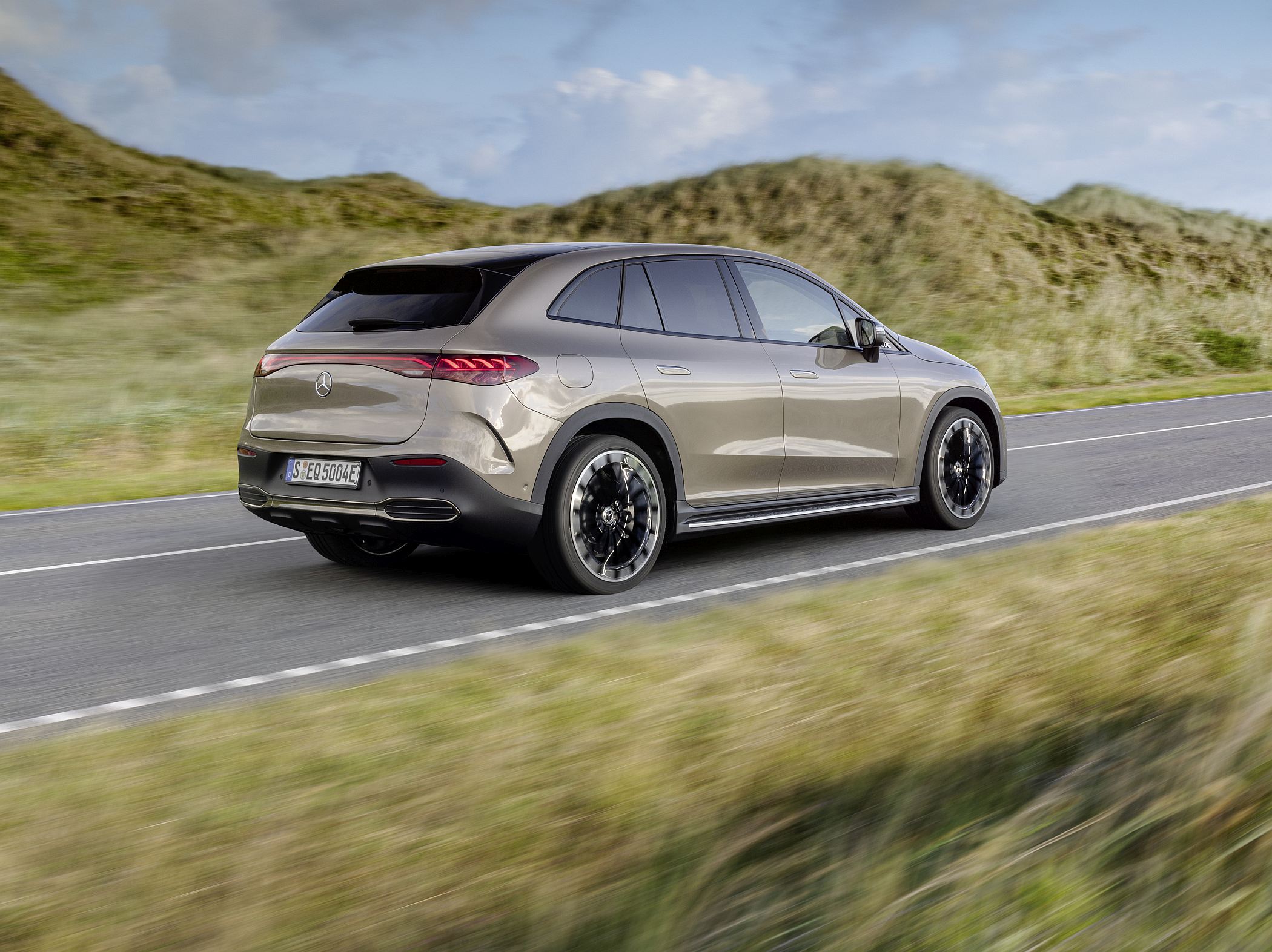 A suspensão pneumática Airmatic com amortecimento continuamente ajustável ADS+ está disponível como opcional, o que lhe permite elevar a distância ao solo em até 30 mm. Outro opcional relevante para incrementar a sua agilidade é o sistema de eixo traseiro direcionável com um ângulo de direção máximo até 10 graus. Este permite facilitar as manobras a baixa velocidade, mas também a agilidade em estrada aberta. O peso máximo admissível do reboque para os modelos com tração integral é de até 1800 kg. Com tração traseira, o EQE SUV tem capacidade para rebocar até 750 kg.