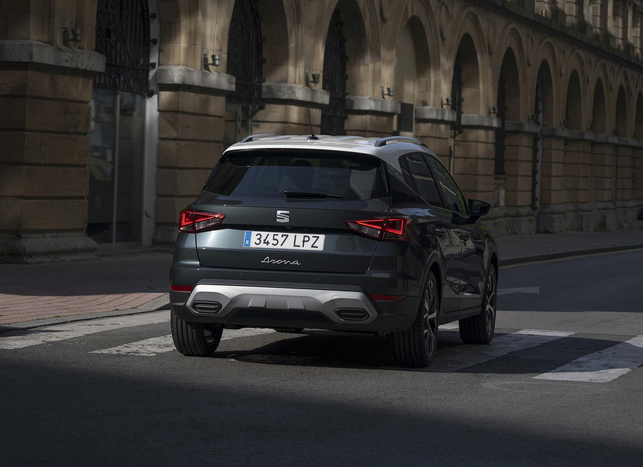 No Arona, importa apontar que a grande maioria das mudanças são exatamente as mesmas, embora se note no SUV compacto uma maior diferença estética, sobretudo quando equipado com as opcionais luzes de nevoeiro circulares no para-choques dianteiro, as quais têm o dom de alterar o seu carácter de forma evidente. Assim, também o SUV dispõe de novos para-choques, a tal dupla de faróis de nevoeiro, novo aileron traseiro e de um novo difusor, que se juntam às chegadas da iluminação LED, à designação de escrita ‘manual’ atrás, ao novo símbolo da SEAT e às novas cores (dez no total, três das quais novas: ‘Dark Camouflage’ e os azuis ‘Sapphire Blue’ e ‘Asphalt Blue’) e jantes (três novas opções, duas de 17” e uma de 18”).