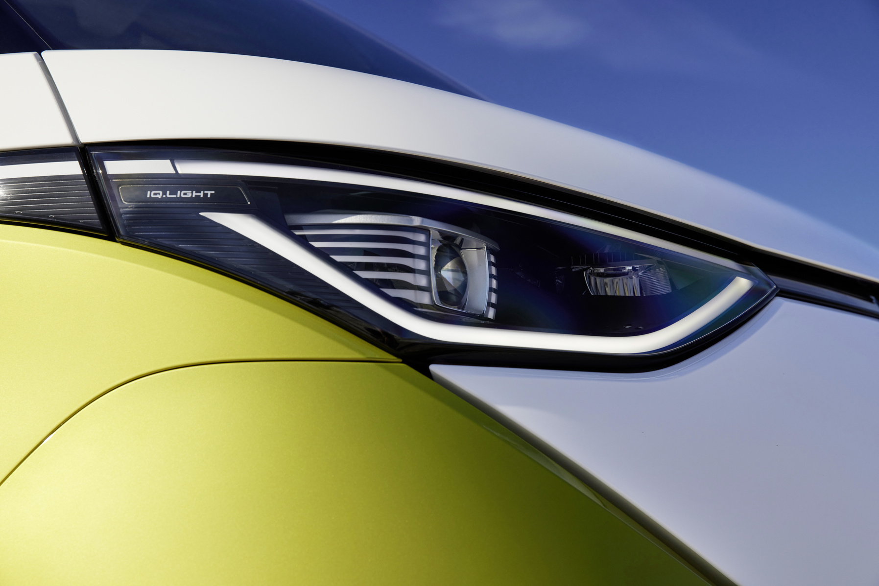 A iluminação LED à frente e atrás é um dos elementos mais facilmente destacados deste ID. Buzz, cujo design adota uma filosofia semelhante à de um monólito que é depois seccionado pela ampla superfície vidrada para uma luminosidade sem mácula no habitáculo. Num piscar de olho ao passado, o logótipo da Volkswagen na dianteira é maior do que noutros modelos.