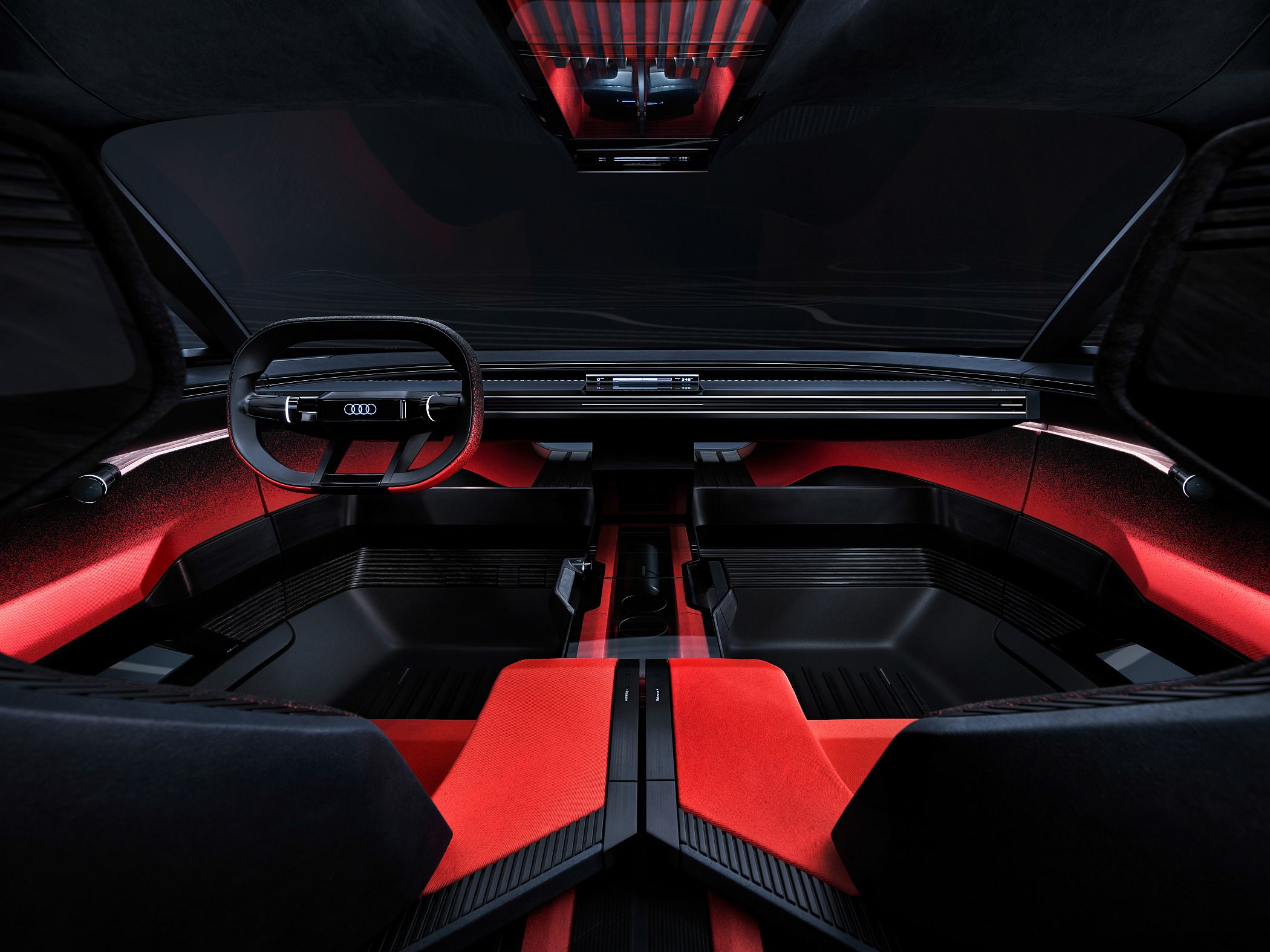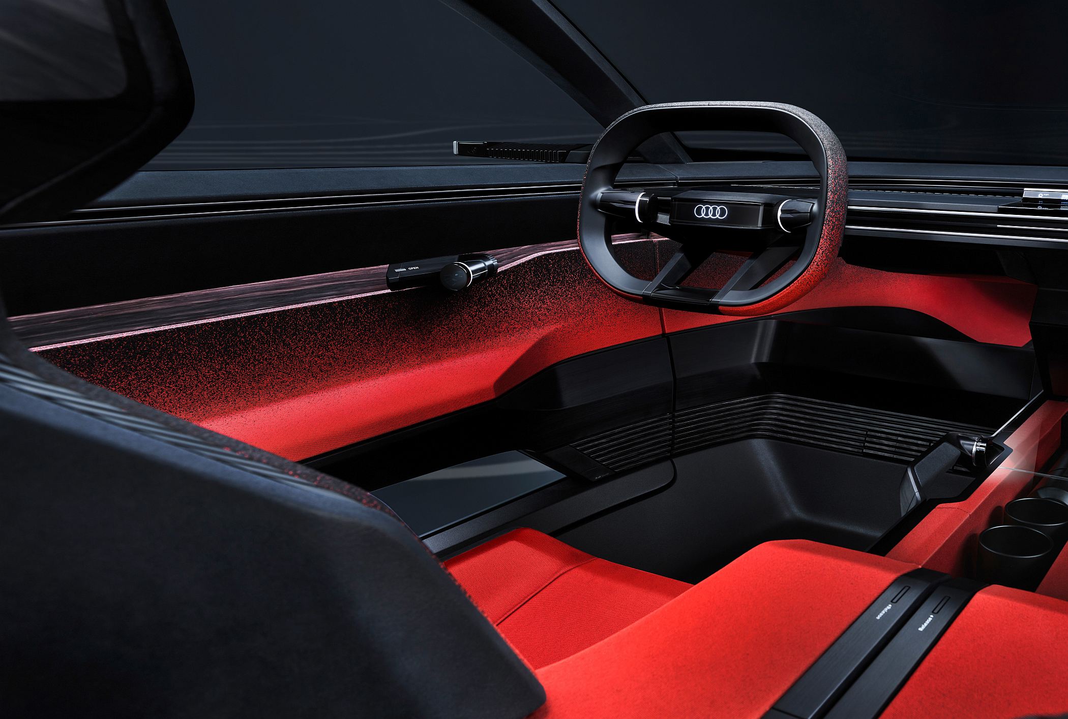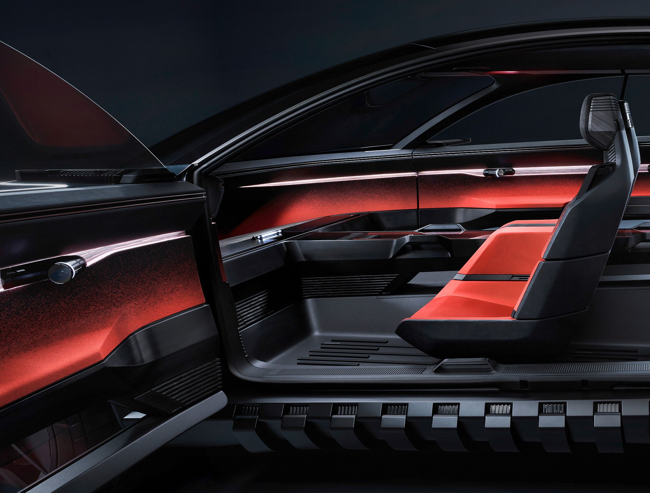 Tal como nas outras ‘esferas’ mostradas pela Audi anteriormente, as portas dianteiras e traseiras abrem em sentidos opostos entre si, não existindo também um pilar B com claro benefícios para o acesso e saída do habitáculo.