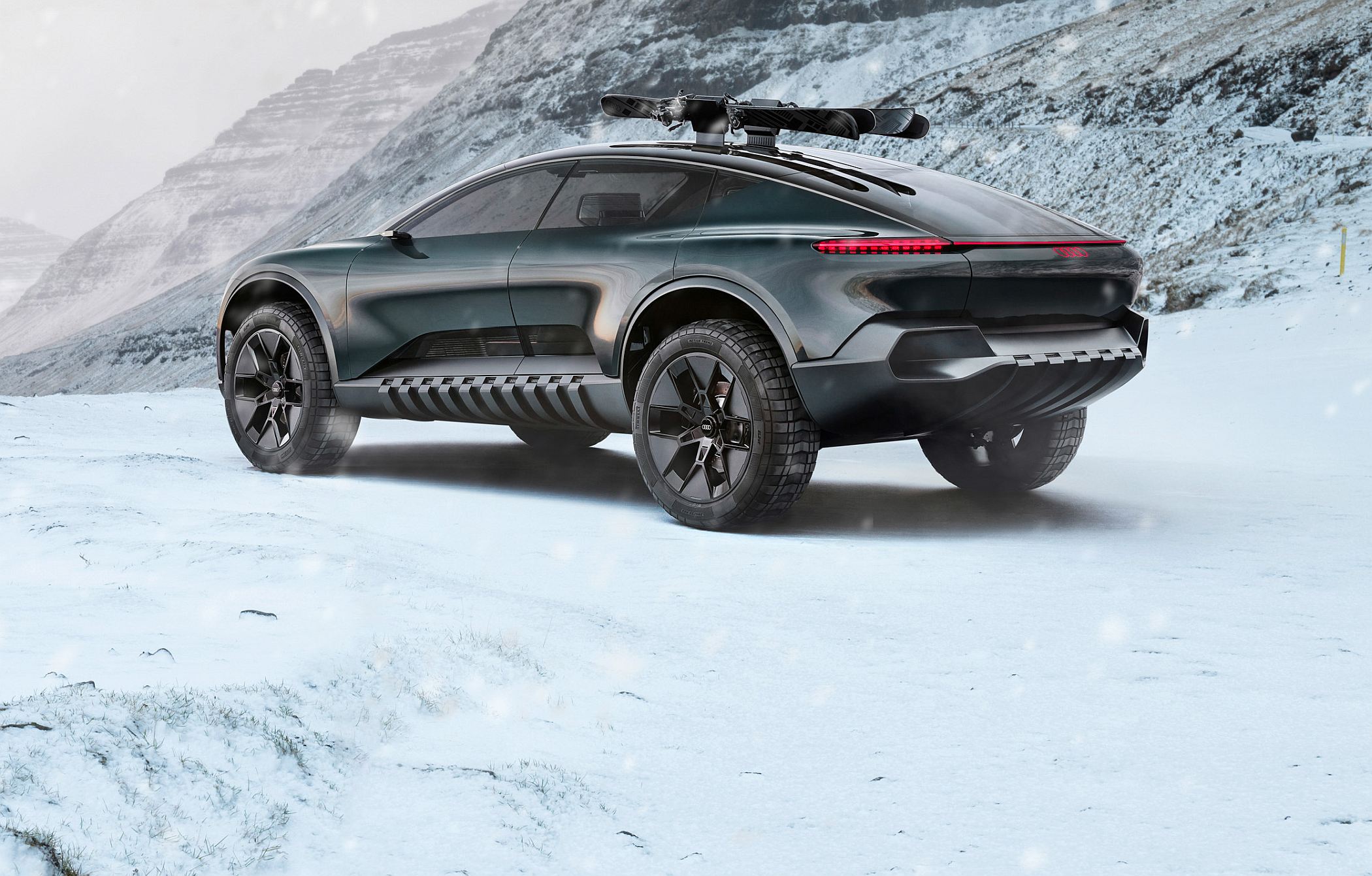 Os pilares C não se alteram, mas uma comporta é ativada e sobe na zona de carga para isolar os ocupantes do banco traseiro dos elementos exteriores. Outro aspeto de destaque é a armação para skis no centro da estrutura do tejadilho que apenas é estendida também se for necessário para transporte seguro daqueles objetos.
