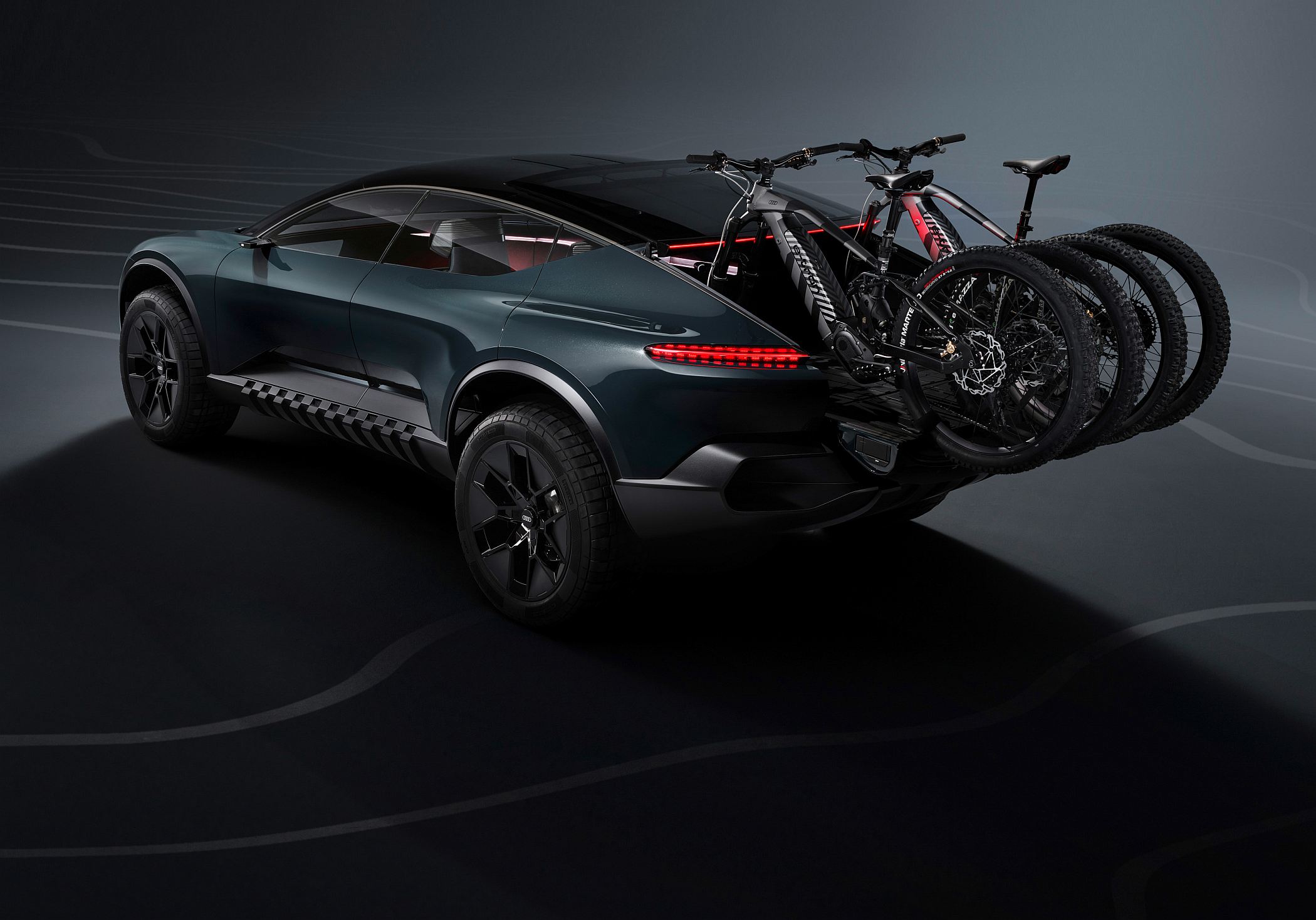 Considerado pela Audi um “mestre de metamorfose”, o activesphere concept sobressai pela sua secção traseira modular. Quando pressionado um botão a bordo, o óculo traseiro desliza paralelamente ao tejadilho, enquanto a secção vertical do porta-bagagens deita-se para criar um compartimento de carga mais amplo com espaços para e-bikes, por exemplo.
