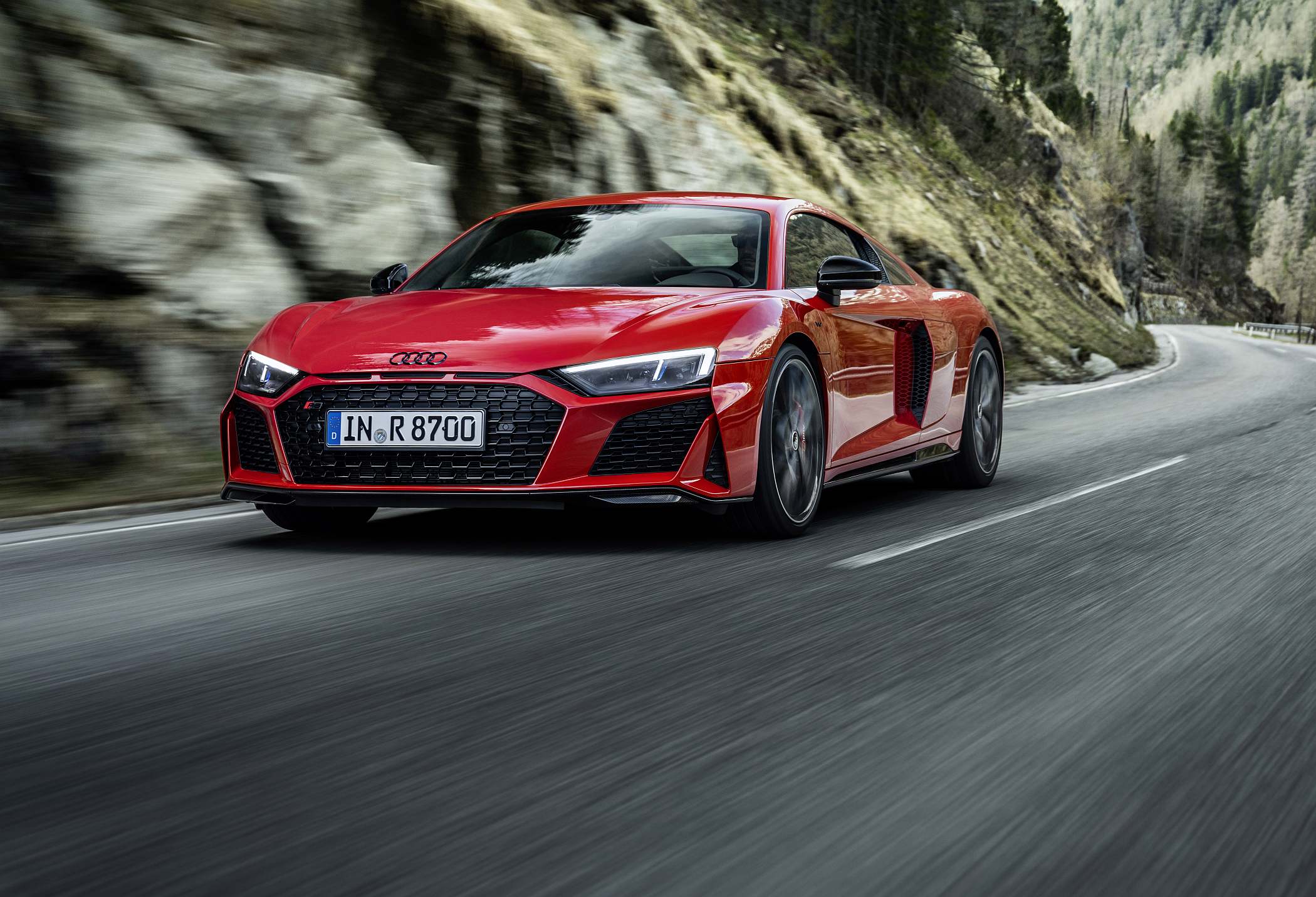 O novo desportivo da Audi recorre a uma versão melhorada do motor V10 de 5.2 litros, montado em posição central, disponibilizando agora 570 CV de potência e 550 Nm de binário, ou seja, mais 30 CV e 10 Nm. Acelera dos zero aos 100 km/h em 3,7 segundos no coupé (3,8 segundos no spyder) e atinge os 329 km/h de velocidade máxima (327 km/h no spyder). Todo o conjunto é ainda complementado por uma caixa automática de sete velocidades S tronic.