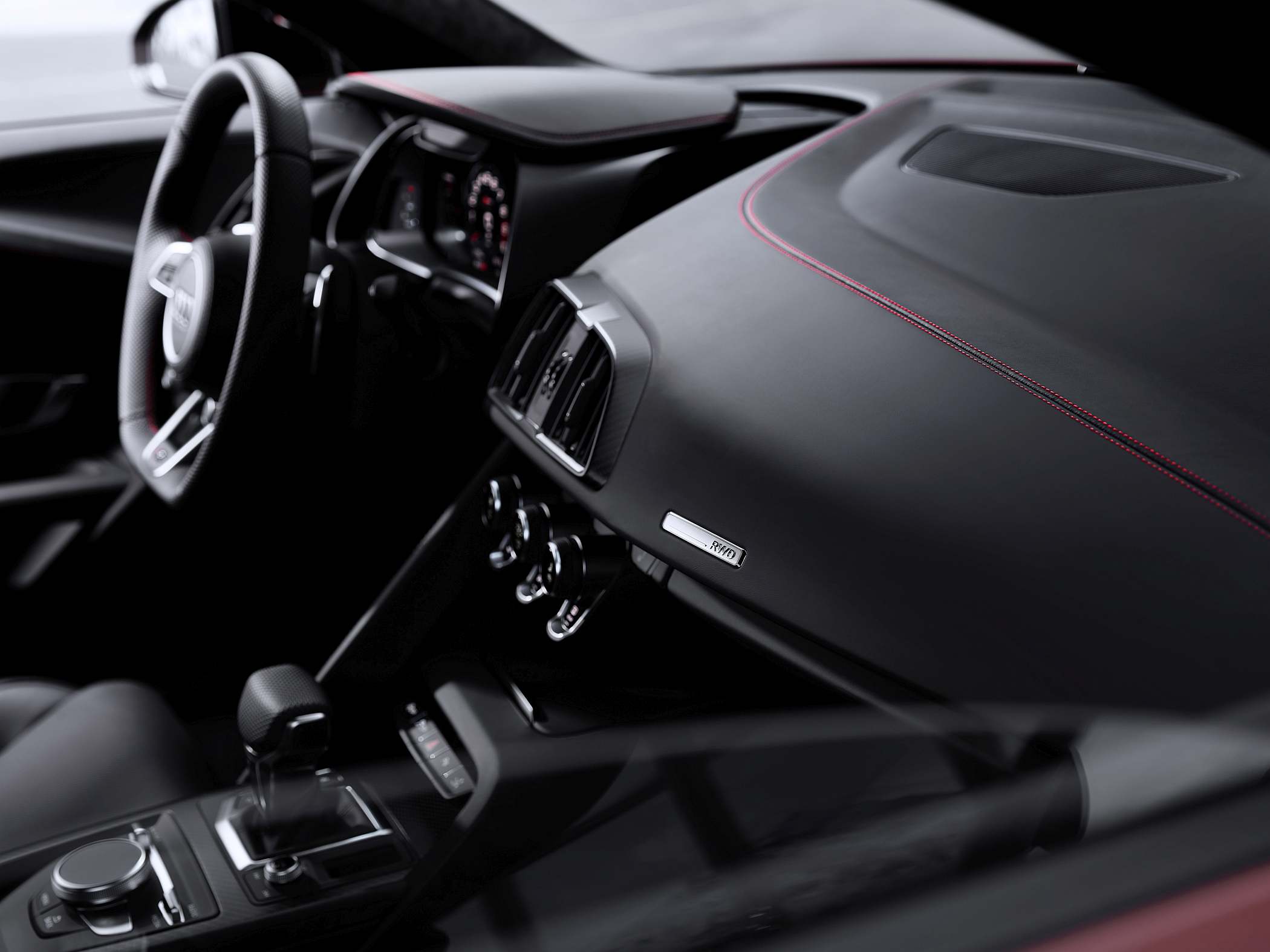 Por dentro, o habitáculo é inspirado pela competição, com destaque para o grande ‘arco’ denominado ‘Monoposto’, que inclui o sistema ‘virtual cockpit’ de 12.3 polegadas. O volante em pele tem comandos multifunções com dois ou, nas versões performance quattro, de quatro comandos satélites – para controlar os modos do Audi drive select, para ‘despertar’ o motor, para ativar o modo ‘Performance’ e controlar a sonoridade do motor e para controlar o painel de instrumentos digital. Os bancos são do estilo bacquet ou desportivos, com revestimento em pele.