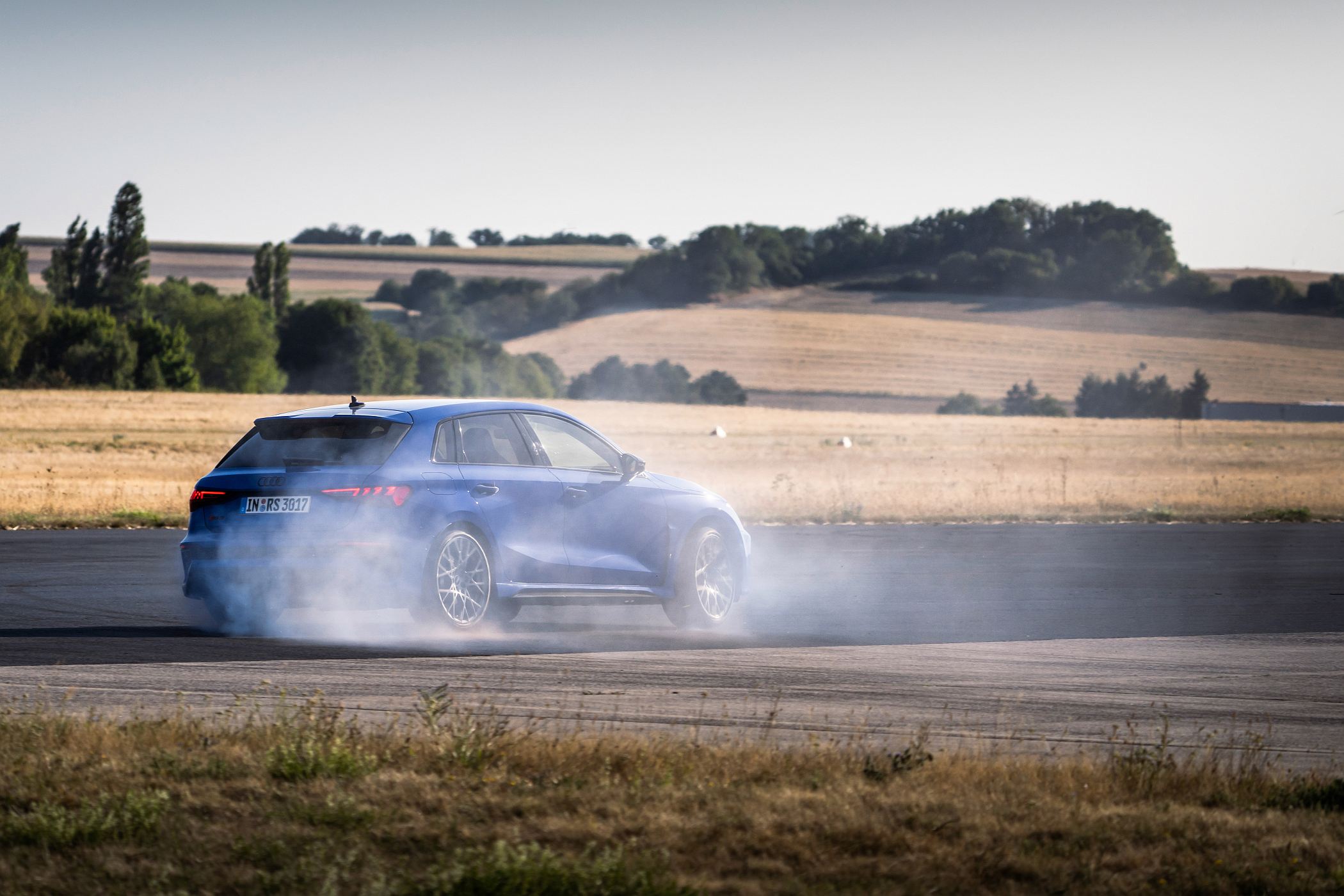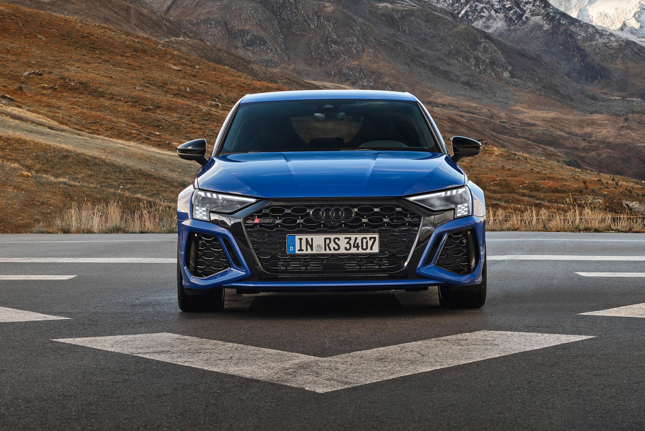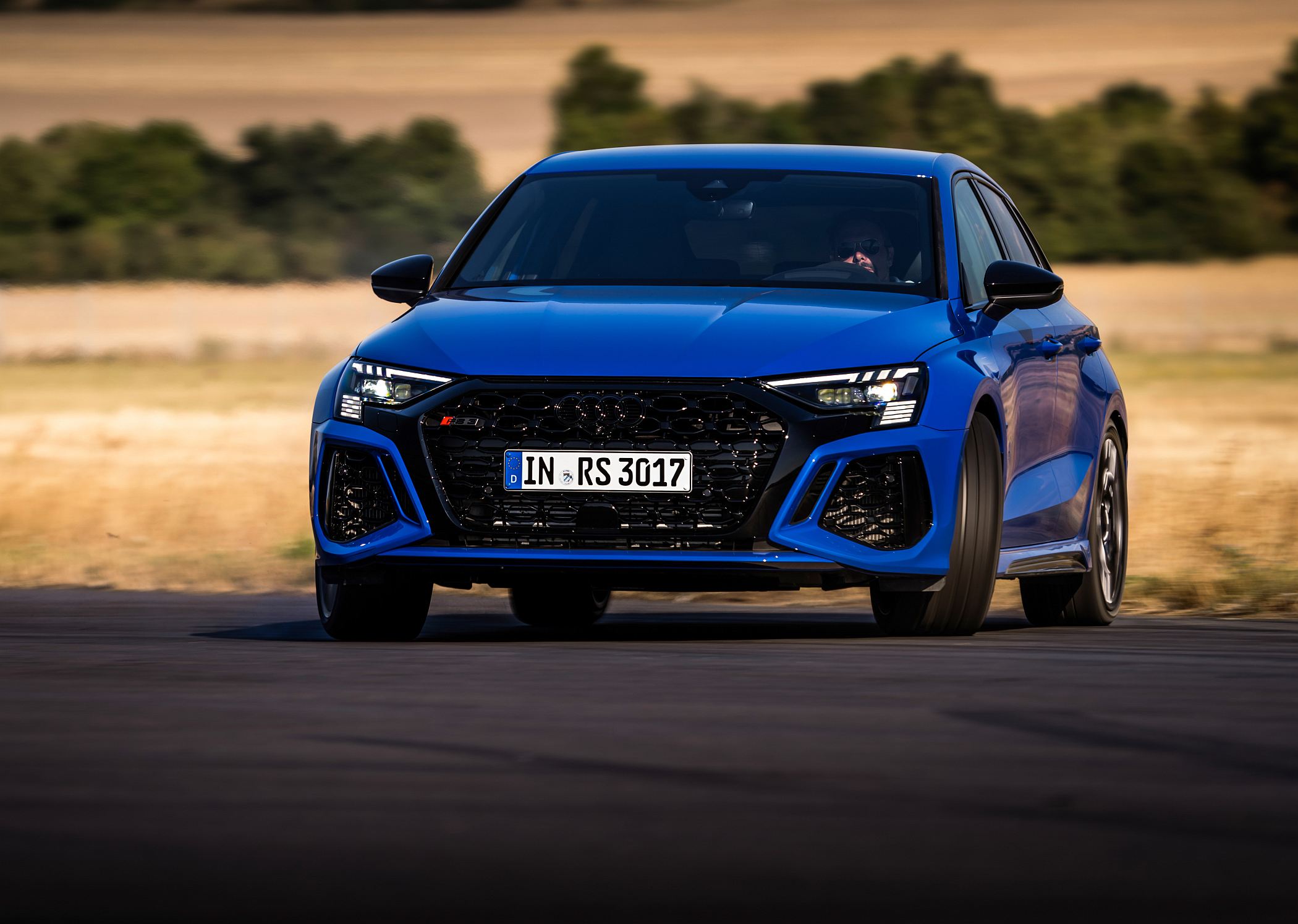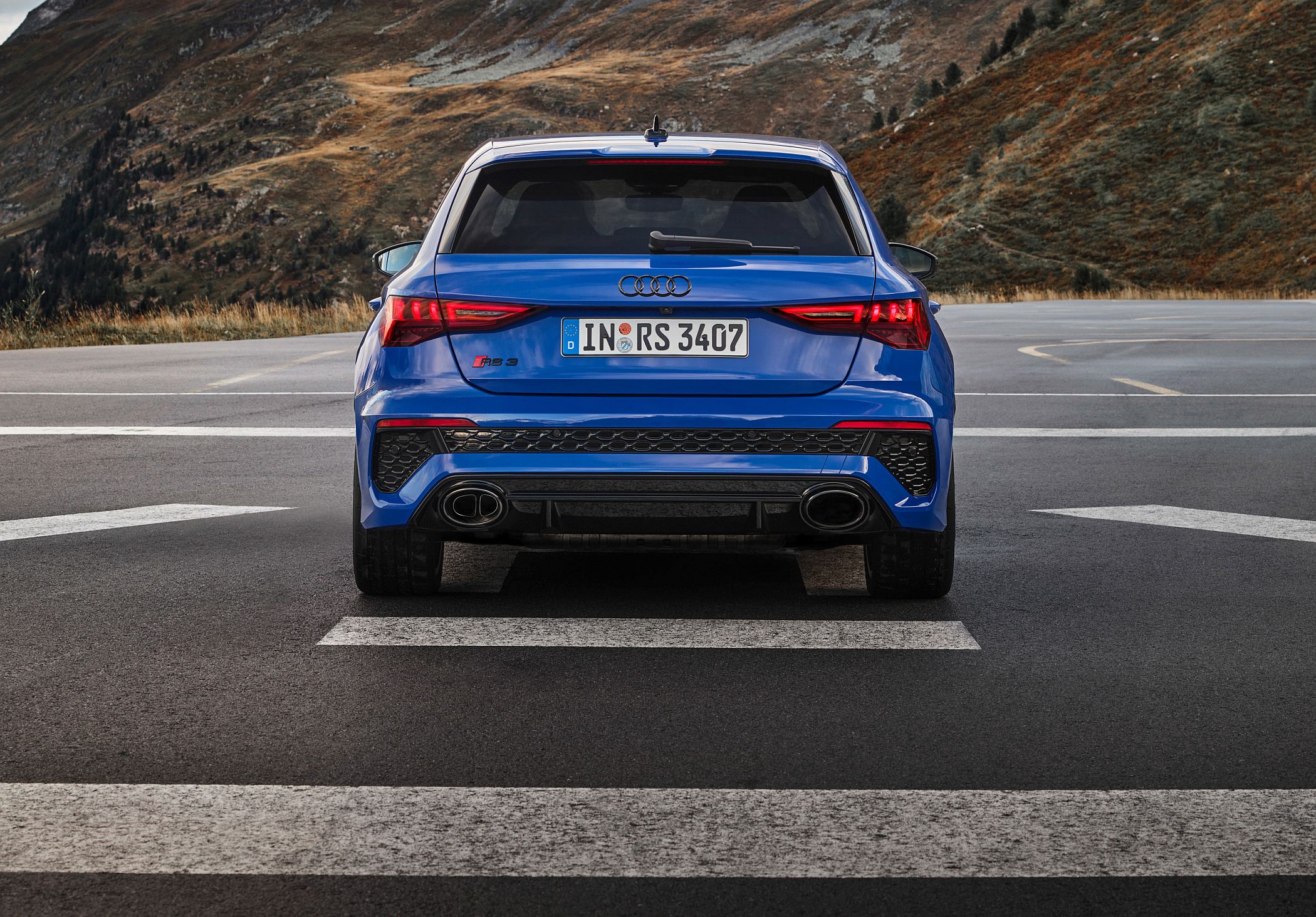Quando o RS 3 Performance Edition é aberto, as luzes de circulação diurnas, de 15 segmentos LED, apresentam um padrão de bandeira de xadrez no lado esquerdo e ‘3-0-0’ no lado do condutor, fazendo alusão ao número de unidades produzidas e à velocidade máxima. Ao fechar o carro, em vez do valor numérico é apresentado o nome ‘R-S-3’.