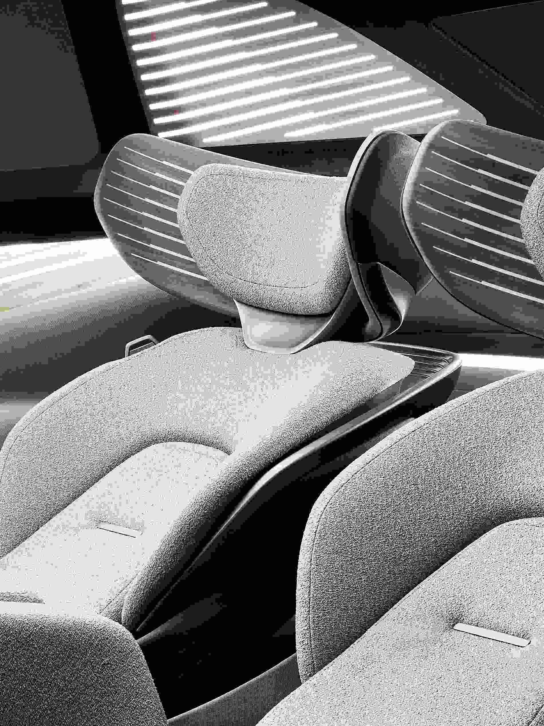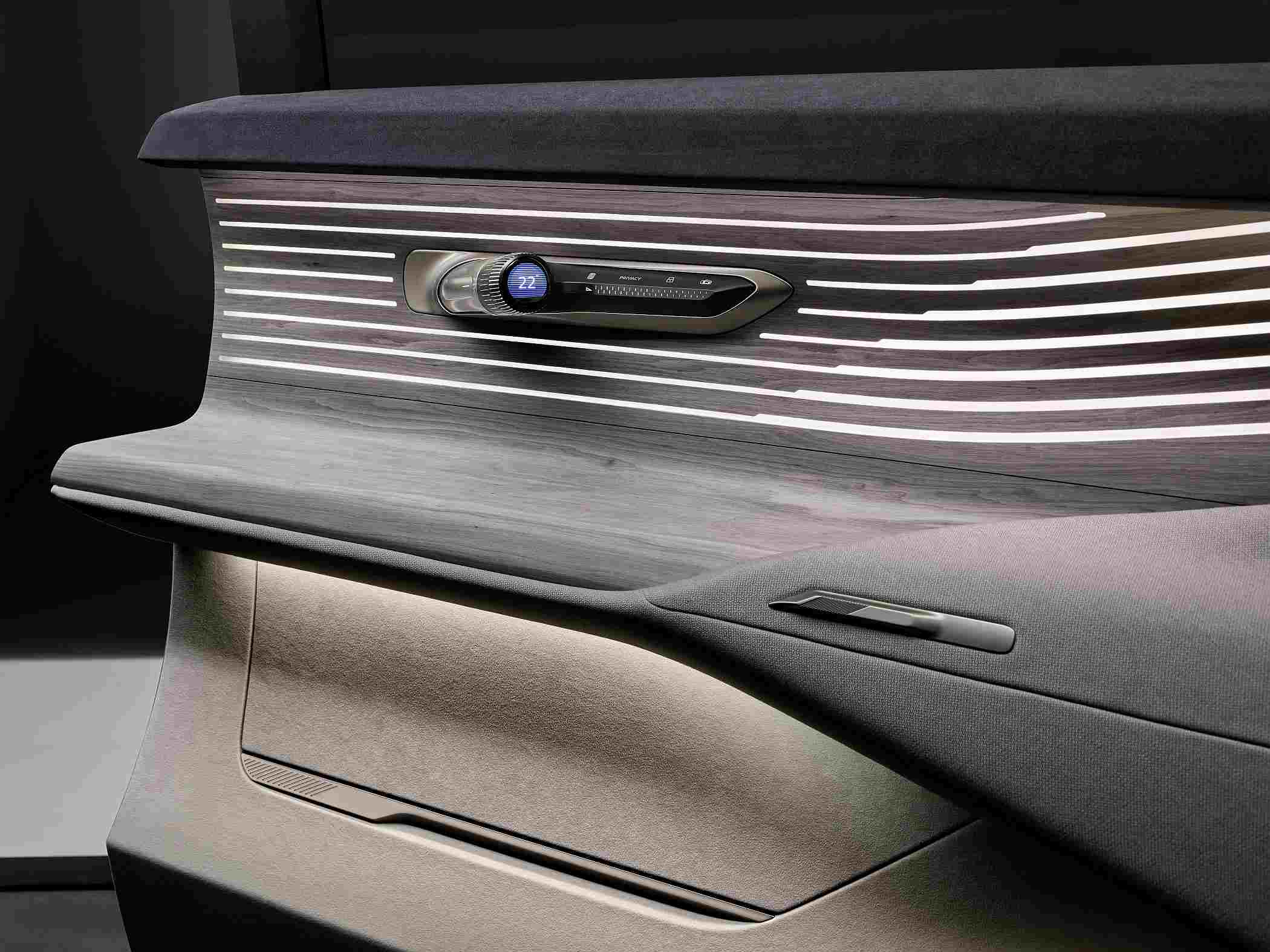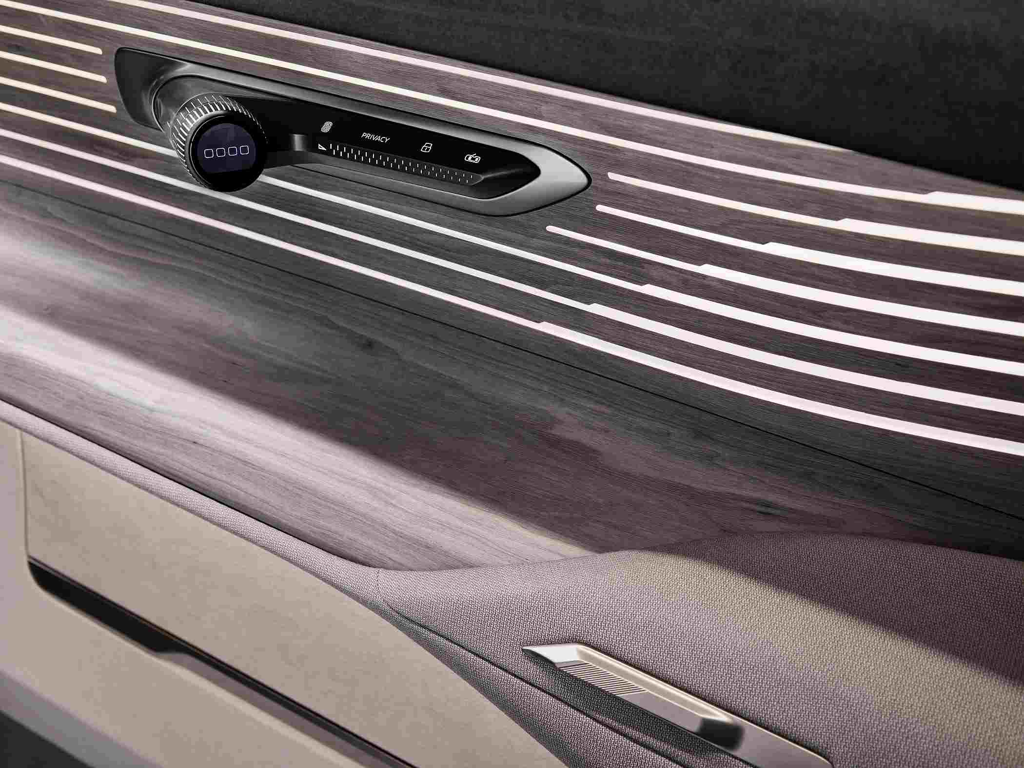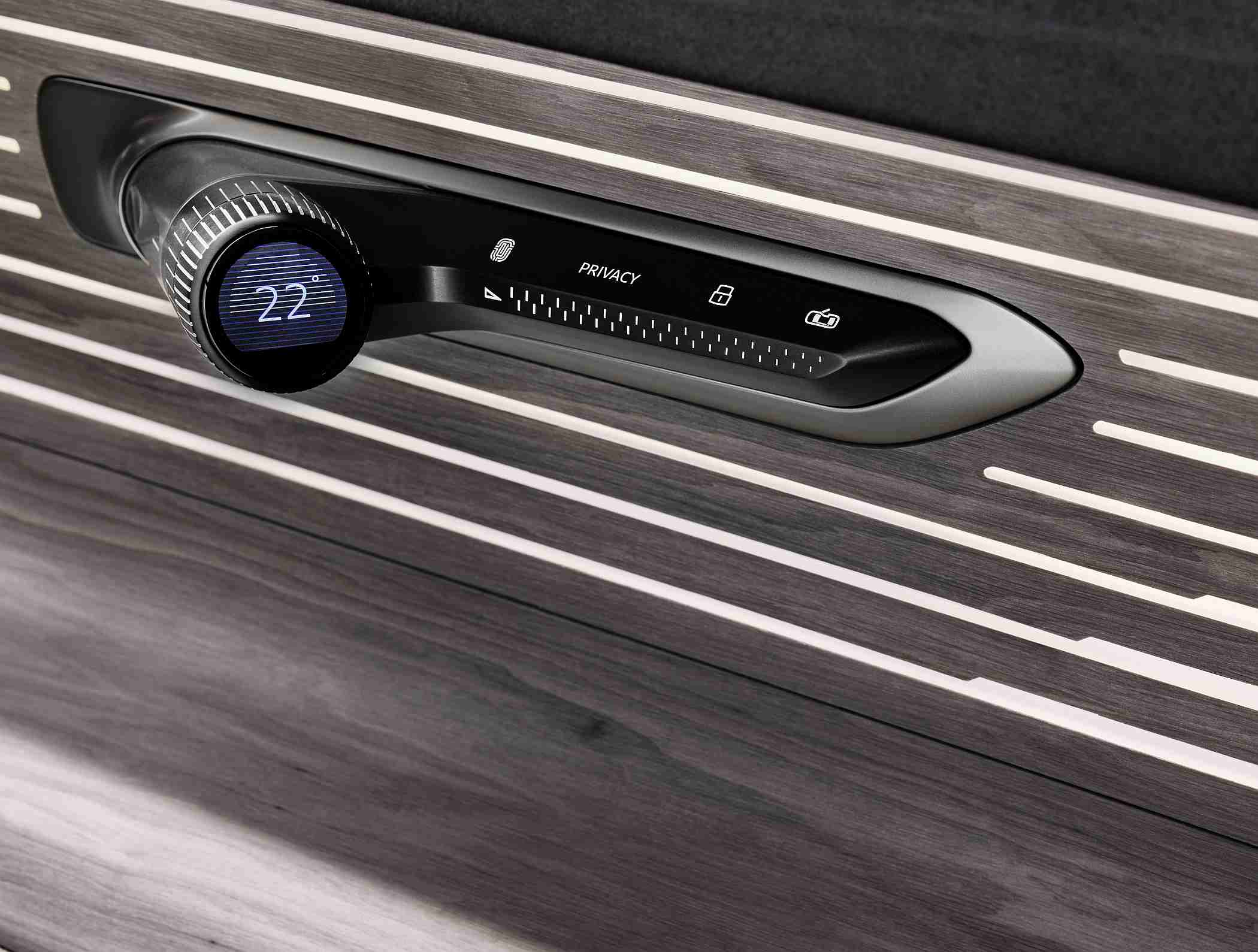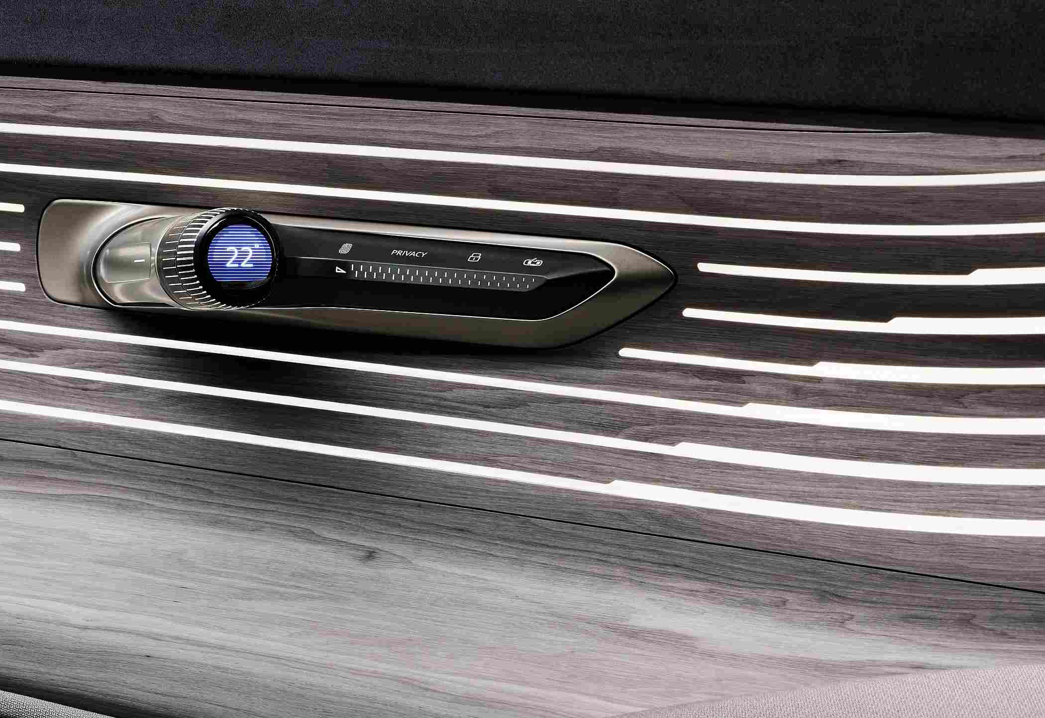 O veículo ativa-se ao toque de um dedo, bem como os diversos ecrãs, embora em forma de projeções nas superfícies de madeira sob o para-brisas. Dependendo das situações de condução, manual com o volante ou autónoma sem volante, os ecrãs dividem-se pelo interior de forma segmentada entre os dois passageiros da frente, apresentando todas as informações necessárias. Uma barra de sensor foi integrada sob a superfície de projeção para alternância rápida entre conteúdos, por exemplo, entre música e navegação.