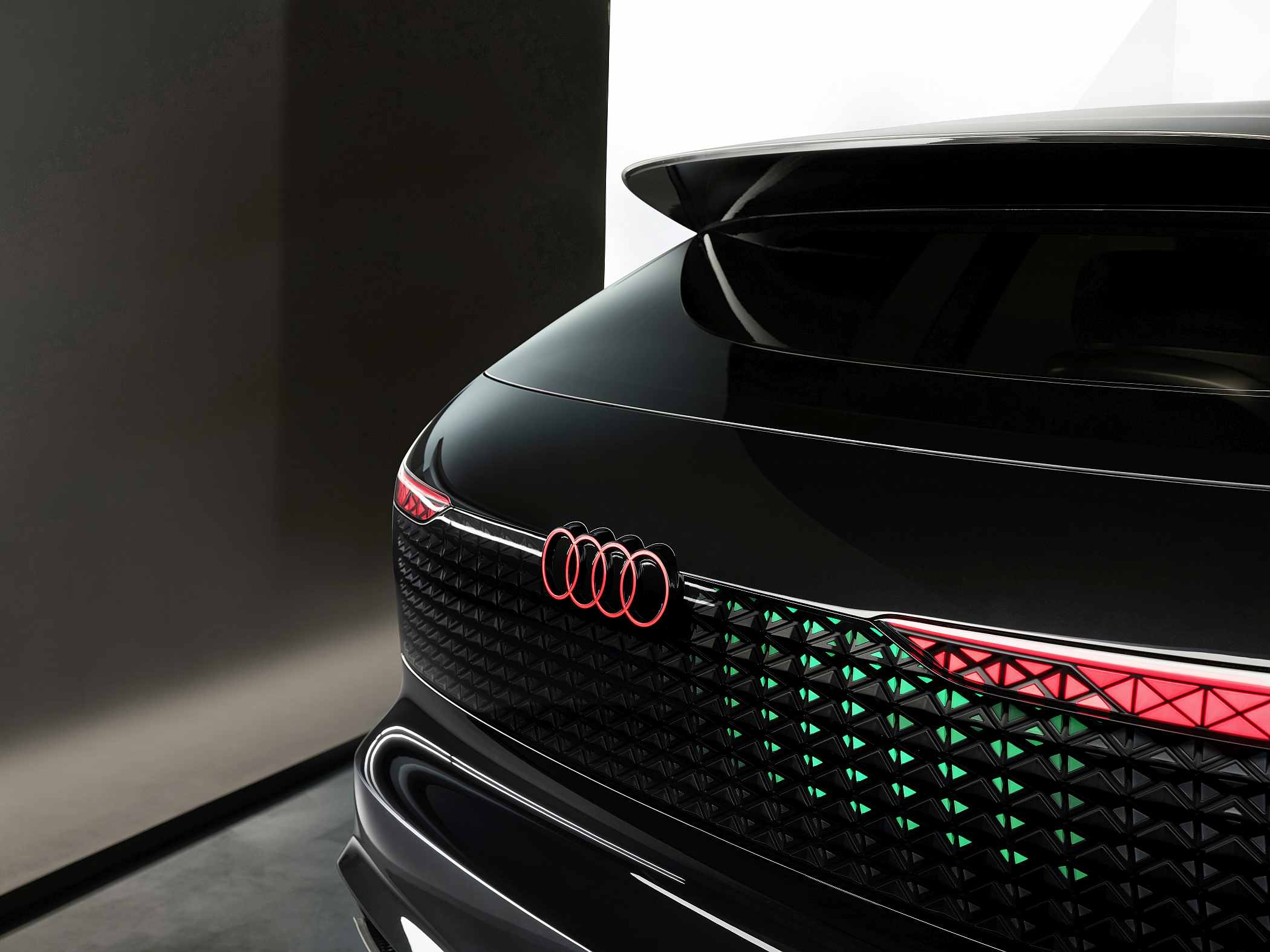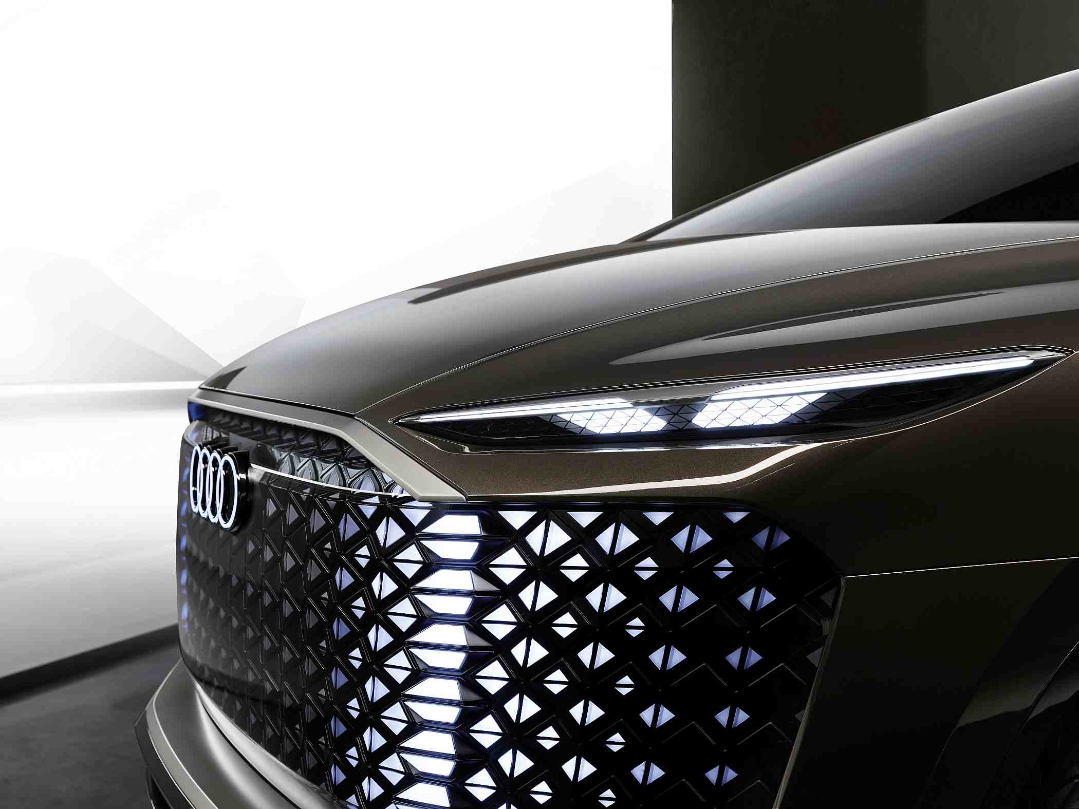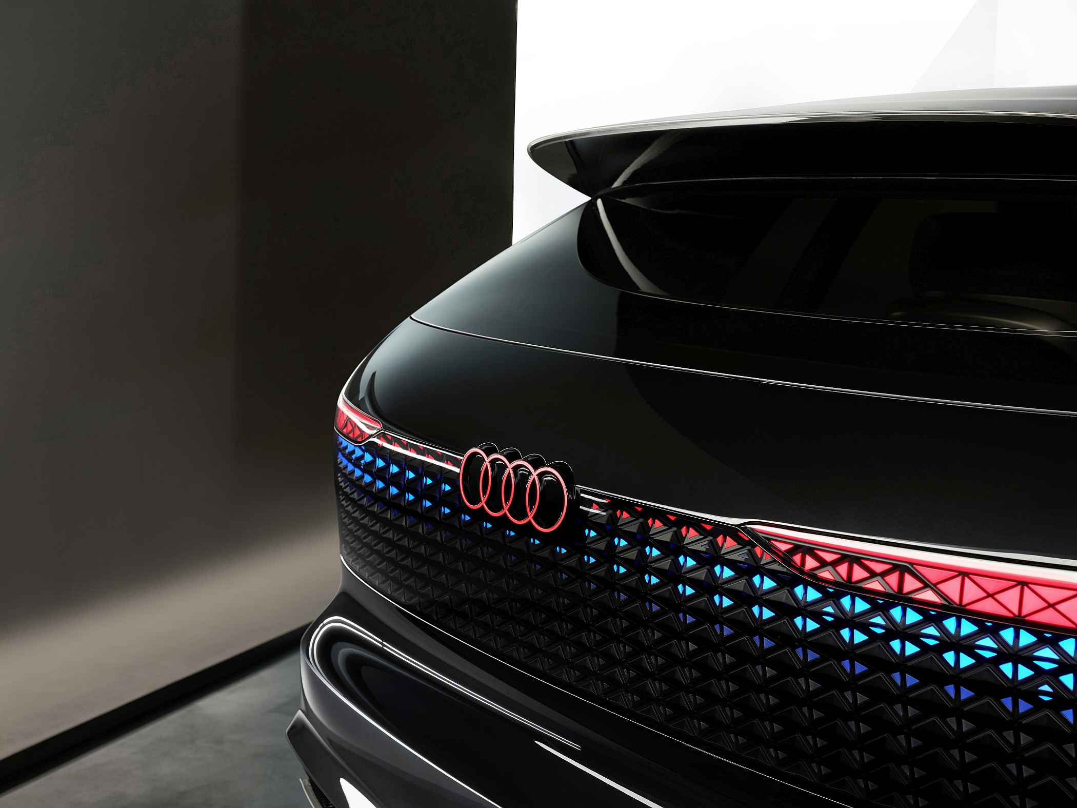 Toda a área da grelha pode ser usada como uma ‘tela’ (daí a designação ‘Audi Light Canvas’) para comunicação e iluminação dinâmica para com os outros utilizadores da via pública. Os faróis assemelham-se agora a olhos, adaptando-se às condições de tráfego, enquanto num tributo especial à China a marca criou um acessório peculiar – um chapéu de chuva iluminado que se inspira nos tradicionais chapéus de chuva chineses, mas com finalidade protetora ao usar os elementos luminosos para alertar da sua presença na estrada.