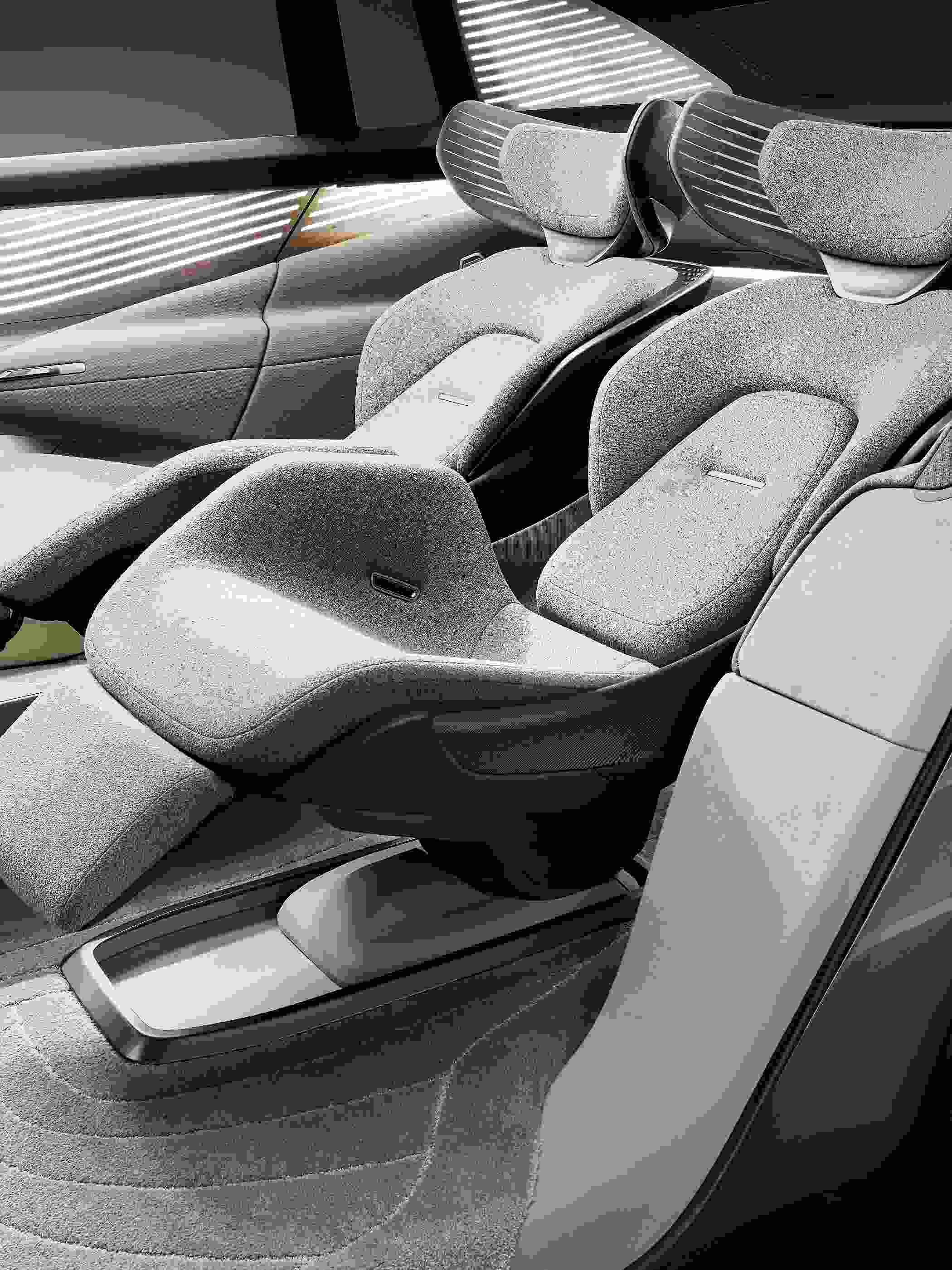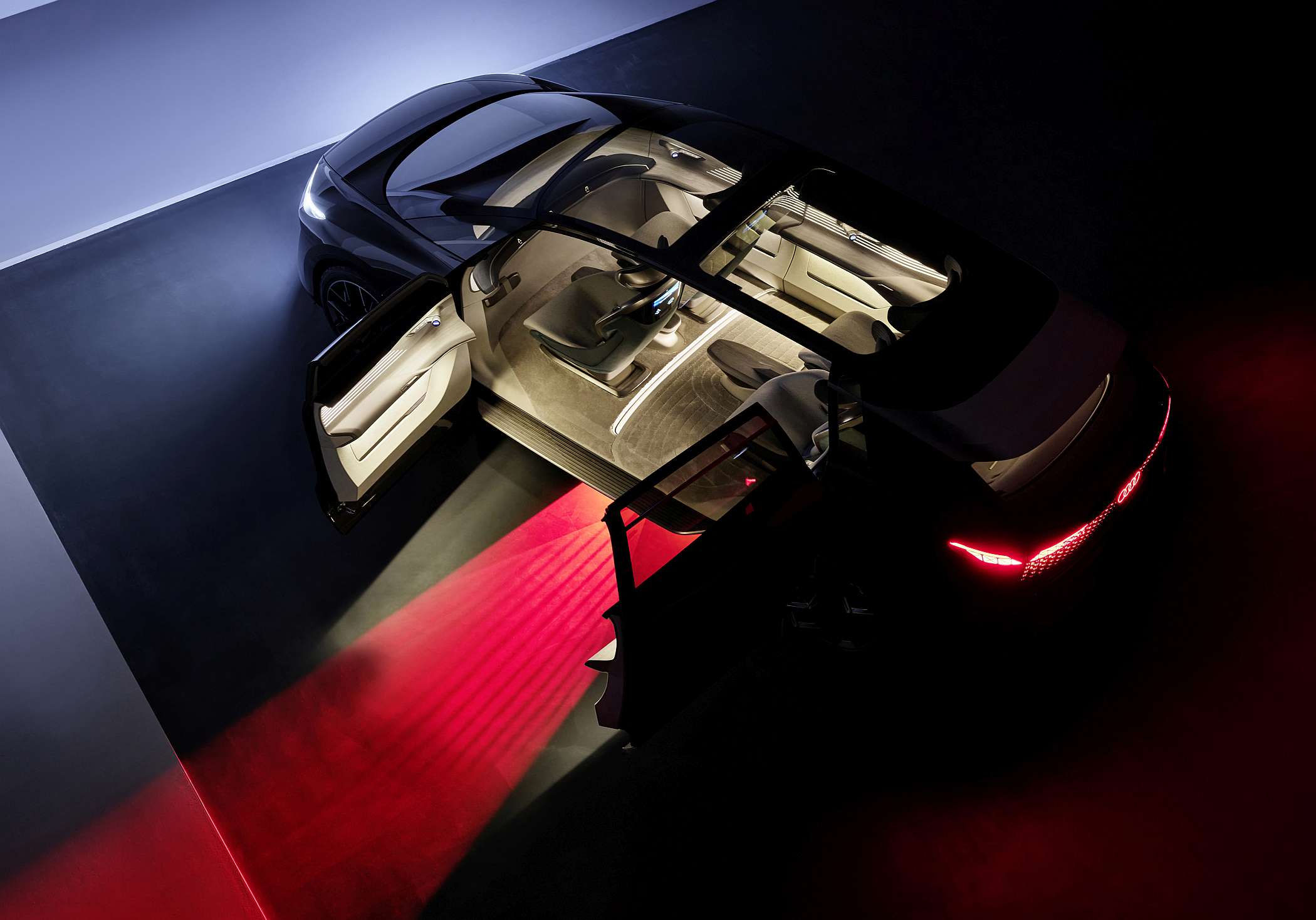 Se o objetivo é isolar-se no seu próprio mundo, o passageiro pode tirar partido de um separador montado atrás do encosto de cabeça ou de um sistema de som no encosto de cabeça para ouvir a sua música preferida. Nas costas dos bancos dianteiros há também ecrãs individuais. Quando os passageiros querem usar o sistema de infoentretenimento em conjunto, podem utilizar um ecrã OLED de grandes dimensões que se apresenta verticalmente a partir da zona do tejadilho, criando um ecrã de cinema que ocupa toda a largura do interior e que permite aos ocupantes dos dois bancos traseiros verem um filme em qualidade.