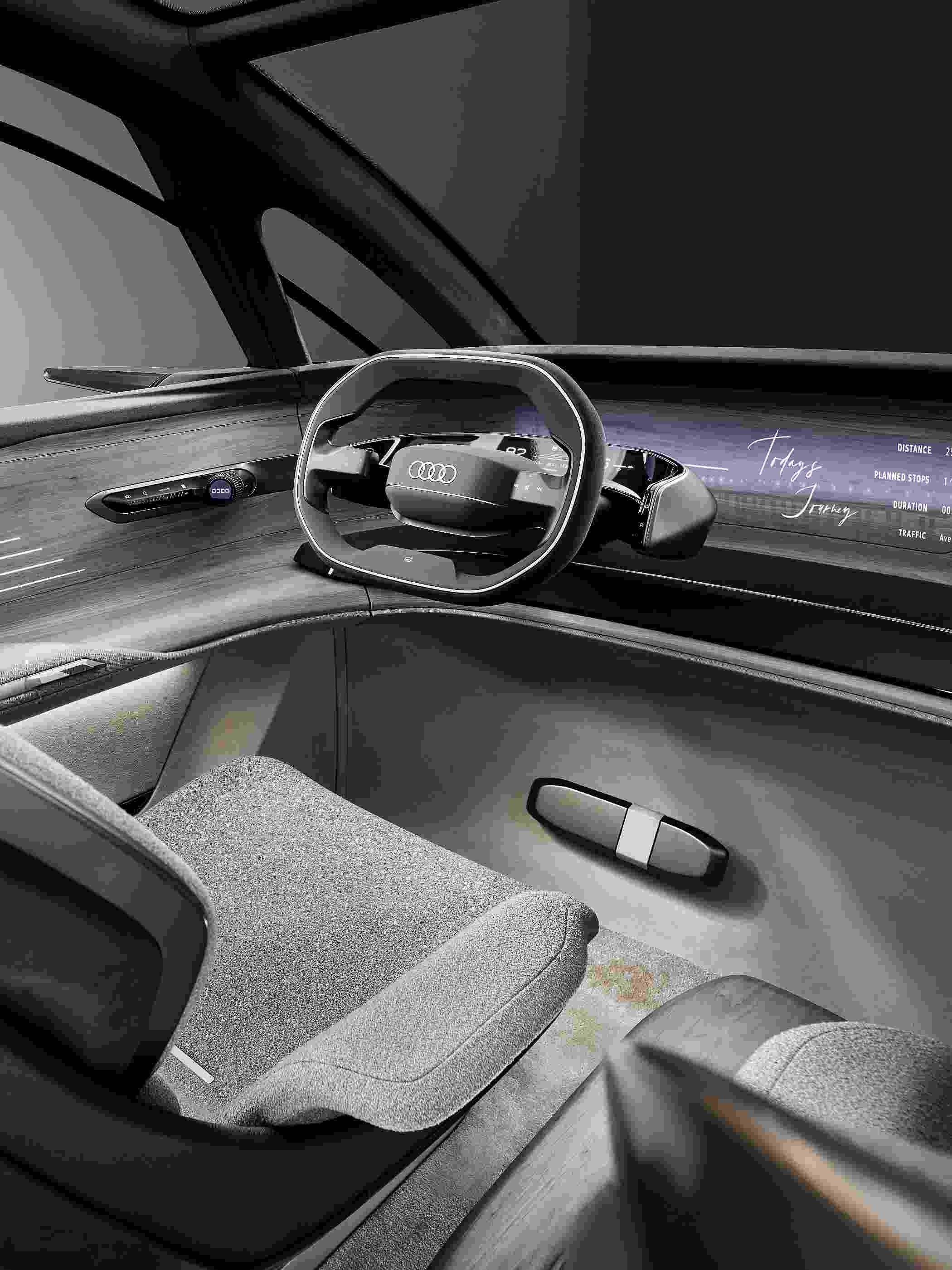 Nota ainda para o facto de muitos dos materiais deste protótipo serem provenientes de fontes sustentáveis, dispensando ainda a utilização de químicos durante o processo de produção. O enchimento dos bancos é feito de Econyl, uma poliamida reciclada que pode ser também reutilizada após a utilização no automóvel sem perda de qualidades. O revestimento dos apoios de braço e da secção traseira do Audi é feita em tecido de bambú, que é mais sustentável na sua cultura e transformação do que a madeira.