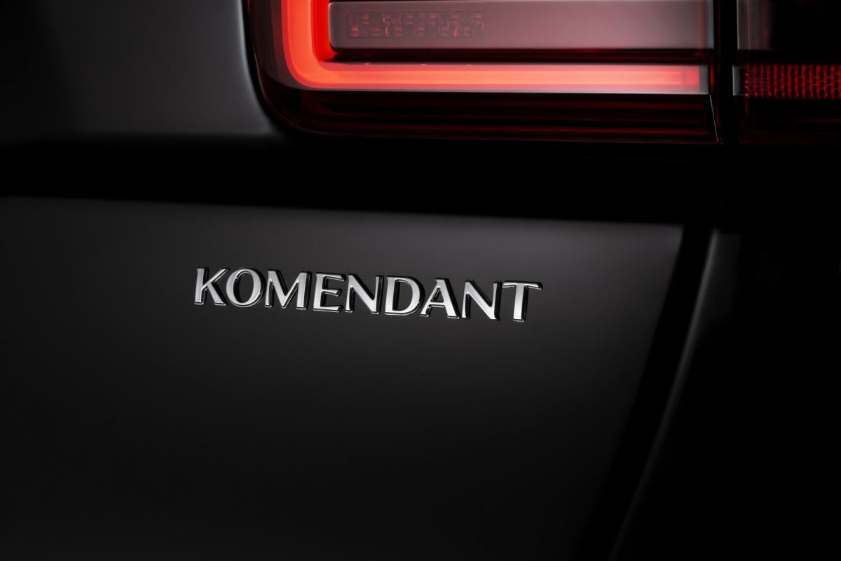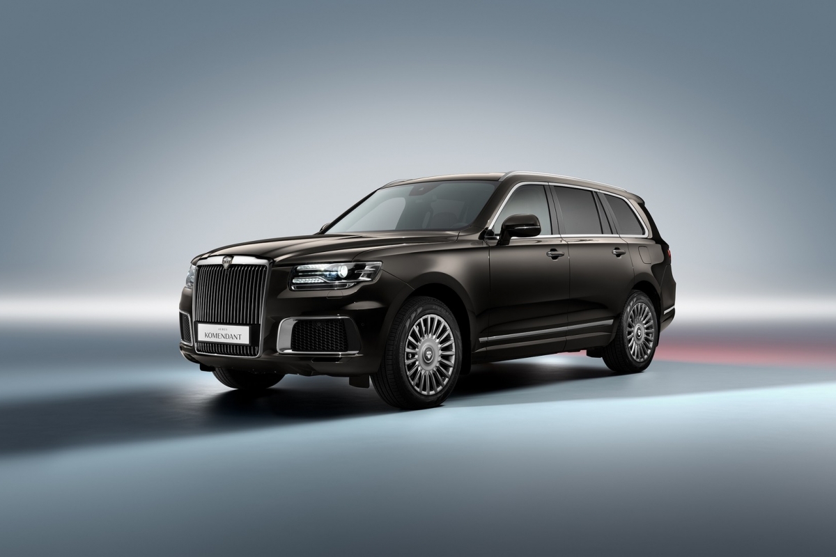O lançamento mais recente tem o nome sugestivo Komendant e está claramente inspirado no Cullinan, com a grelha enorme de 22 lâminas ladeada pelas óticas estilizadas e entradas de ar de dimensões igualmente avantajadas.