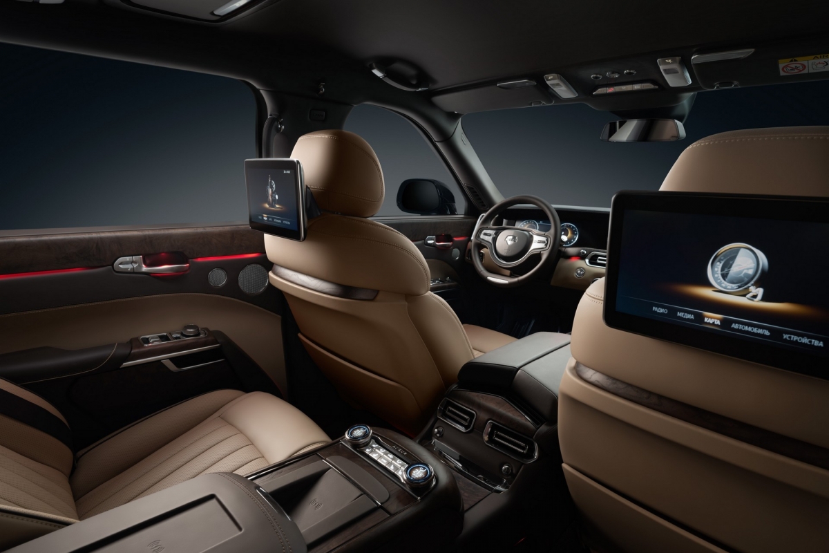 Os automóveis da gama Aurus foram concebidos para terem versões blindadas ou normais, sem proteção especial, mas todos são proposta na configuração de dois bancos individuais atrás, com aquecimento, ventilação e massagem.