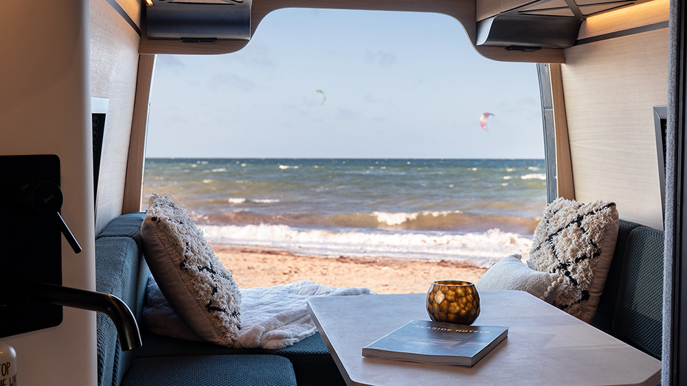 Alemães da Loef transformaram um furgão de sete metros numa verdadeira casa de férias sobre rodas, com barbecue e minibar incluídos.