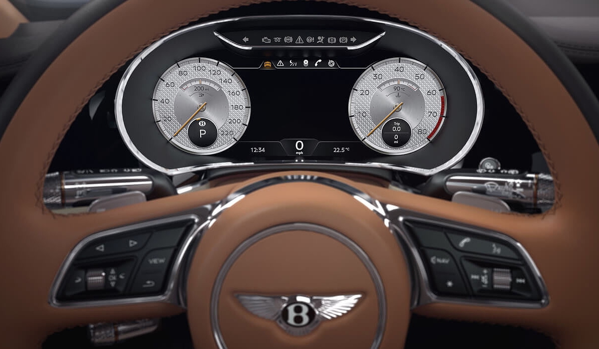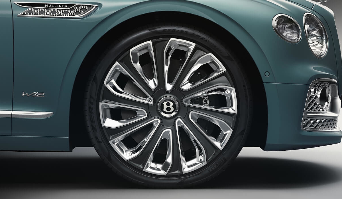 Já entre os (muitos!) apontamentos de luxo estão as exclusivas jantes em liga leve de 22’’, com a tampa central automaticamente nivelada (o símbolo está na posição certa mesmo quando as rodas estão a girar), uma nova grelha e entradas de ar com um padrão de malha dupla diamantada e as capas dos espelhos retrovisores prateadas. O icónico símbolo Flying B eleva-se automaticamente no capot quando se inicia a marcha, sendo também iluminado. Na zona dos guarda-lamas, há ainda uma gravação do logótipo Mulliner, enquanto a abertura do depósito de combustível (o tampão é em forma de diamante) é operada por modo elétrico.