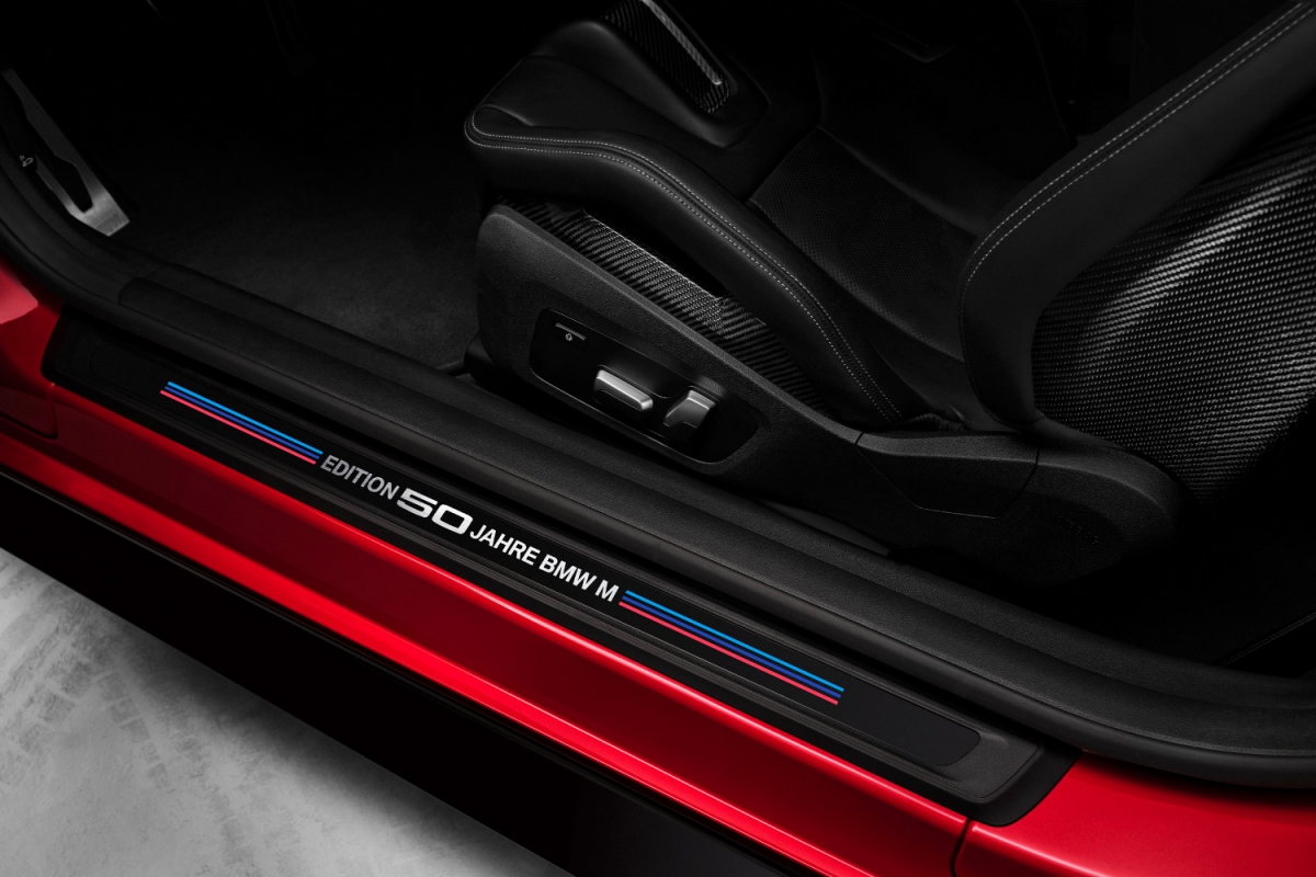 No interior, o destaque vai para as várias aplicações em carbono e as soleiras das portas com a sigla “Edition 50 Jahre BMW M”, designação que também se encontra na placa de metal numerada na consola central.