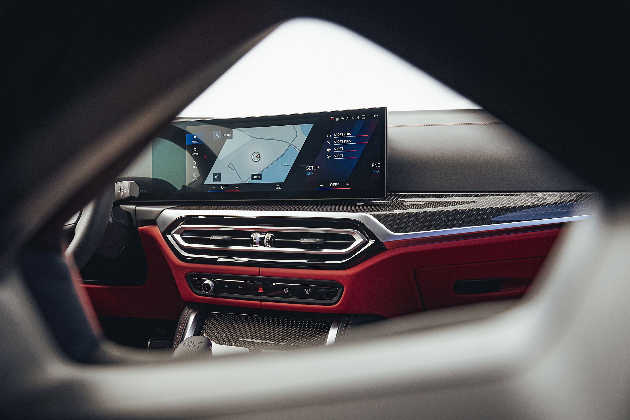 A bordo, a marca procurou novamente conciliar a aparência mais radical com a funcionalidade e comodidade própria de uma carrinha. Dessa forma, entre os elementos de série, destaque para o ecrã curvo BMW Curved Display com um painel de instrumentos personalizável de 12.3” a que se junta um ecrã tátil de 14.9 polegadas ao centro para controlo de diversas funcionalidades. Ambos os ecrãs estão posicionados por detrás de um único vidro, estando levemente orientados no sentido do condutor. A complementar este conjunto está um sistema head-up display opcional com informações específicas M.