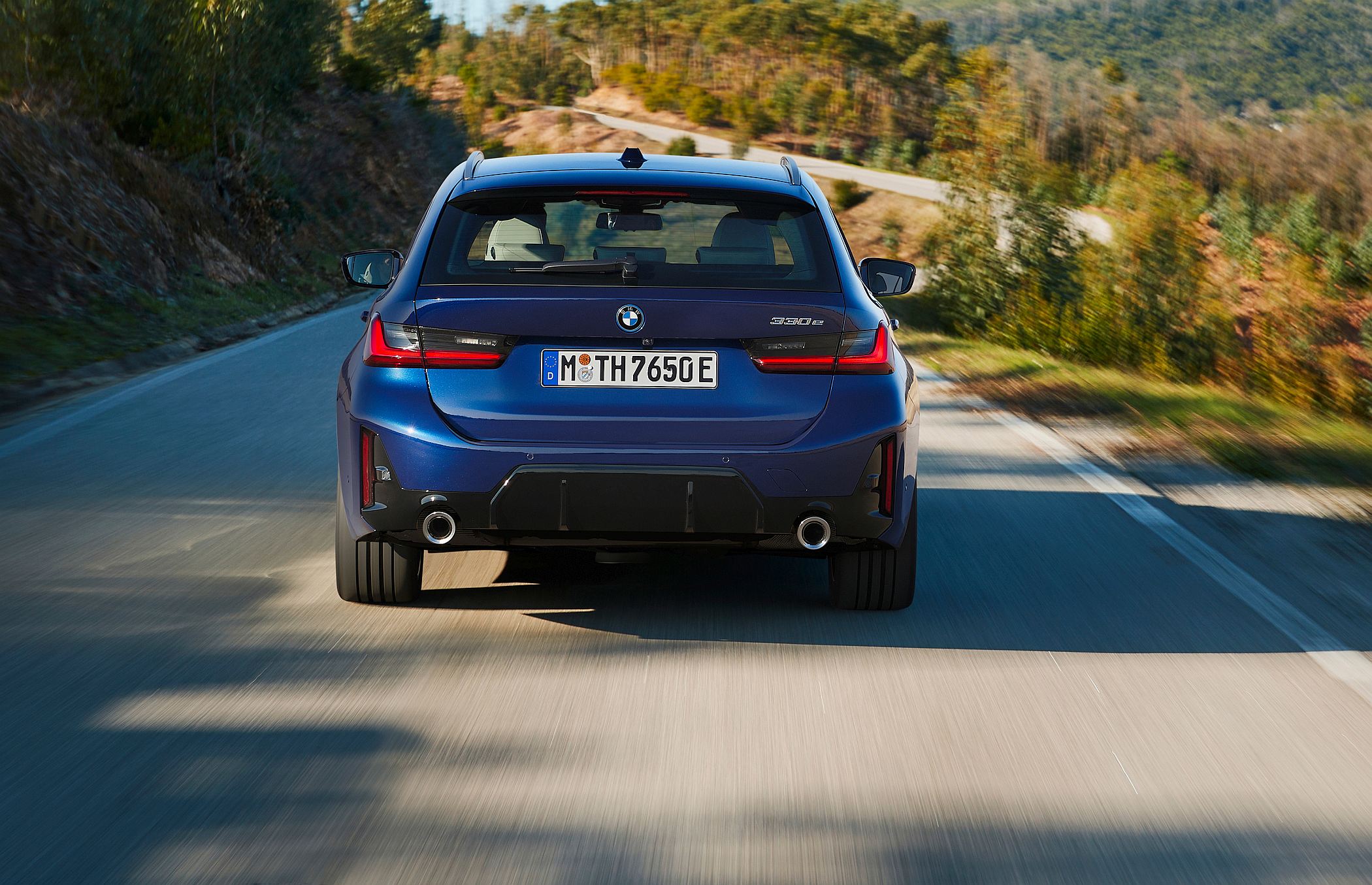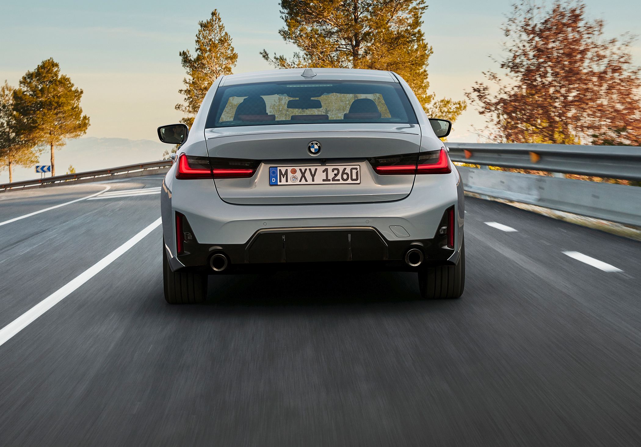 Na parte traseira, há agora uma maior proporção de superfícies pintadas na cor da carroçaria e um desenho mais nítido para as zonas inferiores do para-choques. As linhas horizontais, os farolins finos e as cavas das rodas musculadas acentuam a largura da traseira e combinam-se para um visual mais robusto e imponente. As ponteiras das saídas de escape medem agora 90 ou 100 mm de diâmetro, dependendo da variante de motor. Todos os Série 3 contam agora com jantes de 17 polegadas, de série.