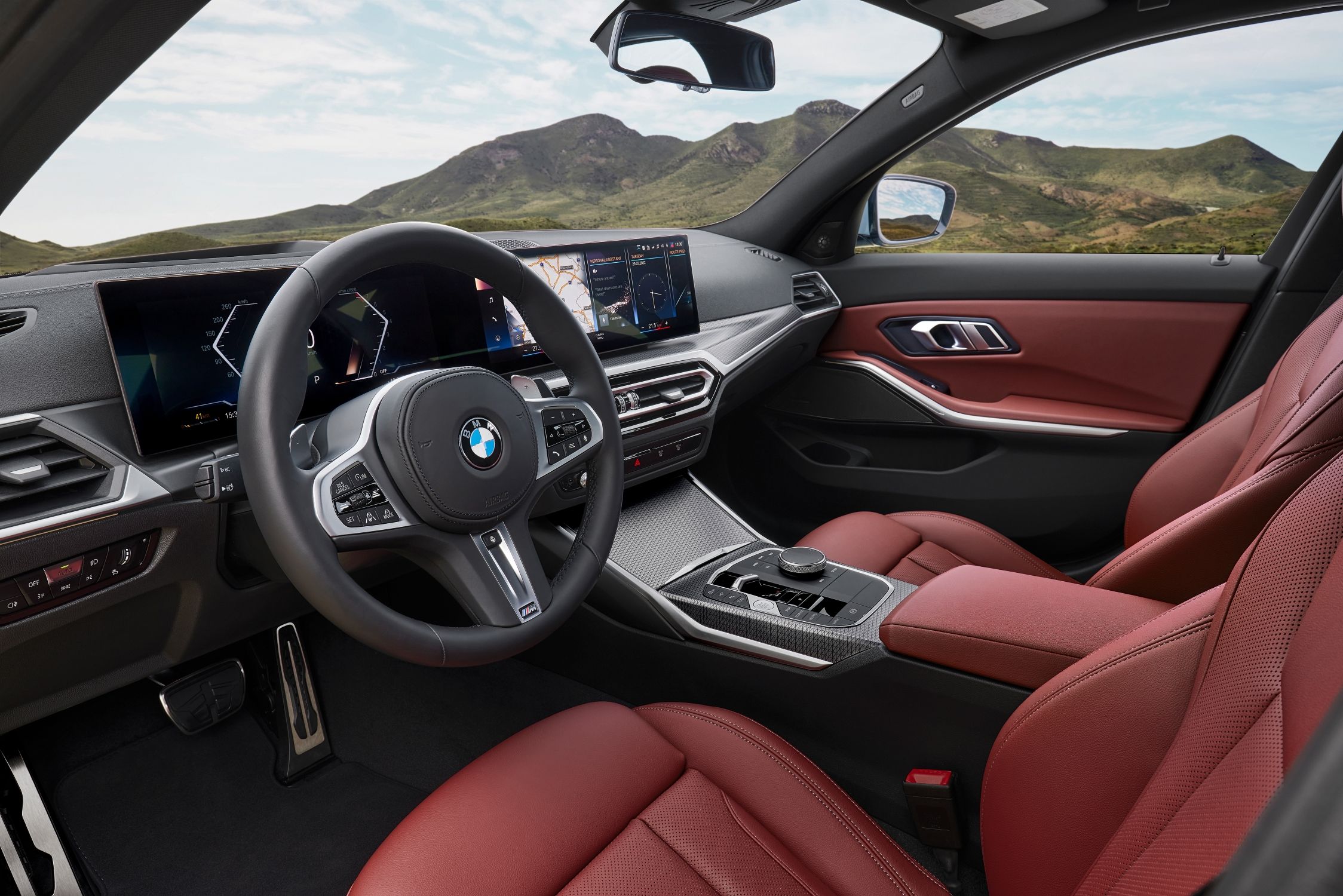 O interior do Série 3 passa a ter agora uma abordagem mais tecnológica, com a aplicação da configuração de ecrã curvo já visto noutros modelos, como no iX. Este conceito BMW Curved Display alberga um ecrã de 12.3” para o painel de instrumentos e um ecrã central tátil de 14.9”, com a superfície contínua a dar a impressão de largura. O número de botões físicos foi reduzido em prol de comandos por voz ou gestuais.