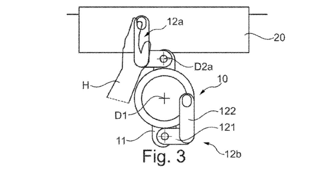 O documento registado no United States Patent and Trademark Office descreve um equipamento muito compacto e com funções retráteis, para permitir a sua utilização com apenas uma mão, e um desenho básico em “U”, com a possibilidade de fazer rodar as extremidades, de forma independente do elemento central, que parece manter-se fixo, mesmo em curva.