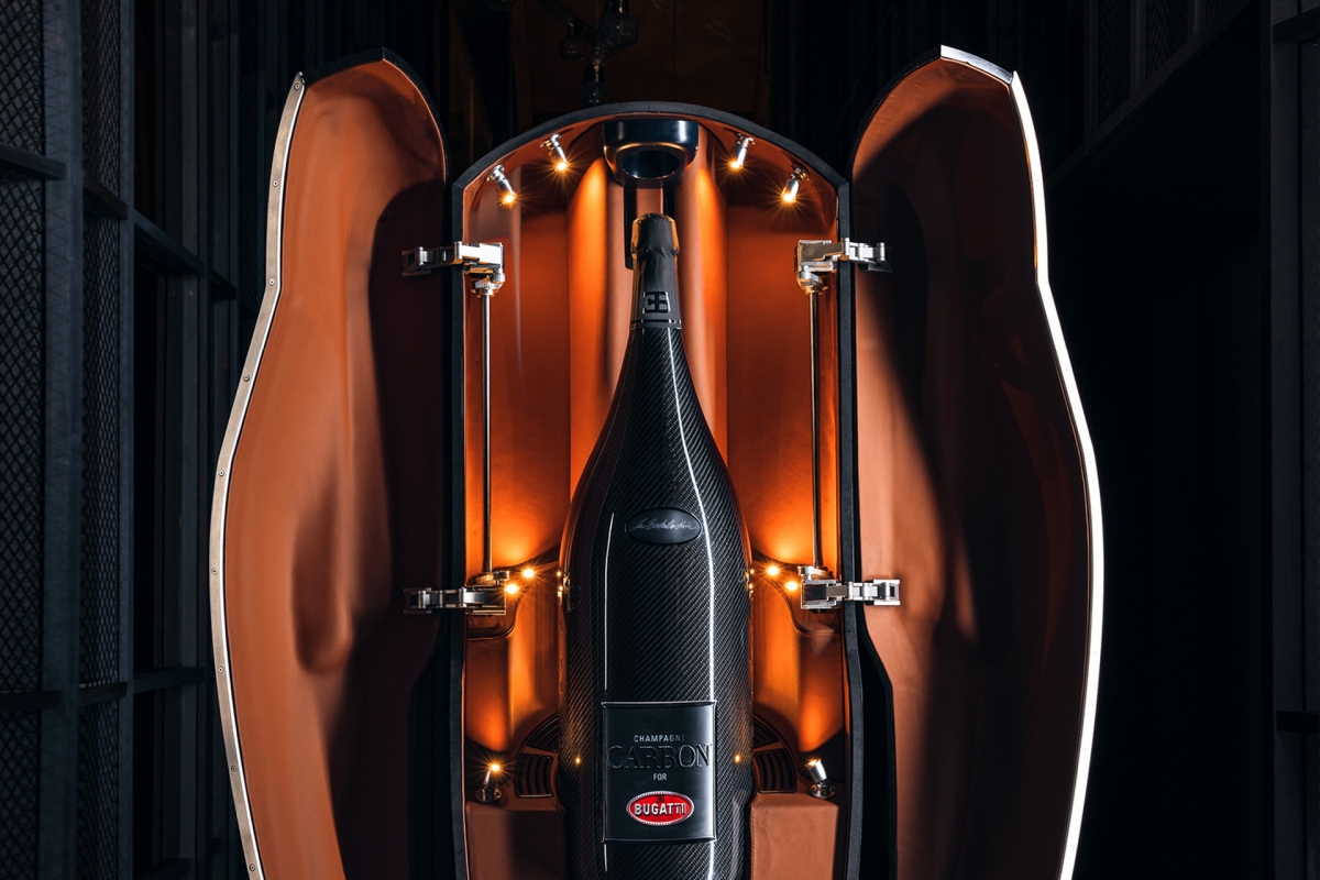 La Bouteille Noire é uma criação exclusiva da Bugatti em parceria com os especialistas da Carbon Champagne e consiste numa estilizada garrafa de 15 litros apresentada numa caixa que reproduz os materiais e as formas do carro. Esta peça de luxo incorpora 314 painéis de fibra de carbono e um conjunto de ventiladores para manter a temperatura constante a todo o momento.