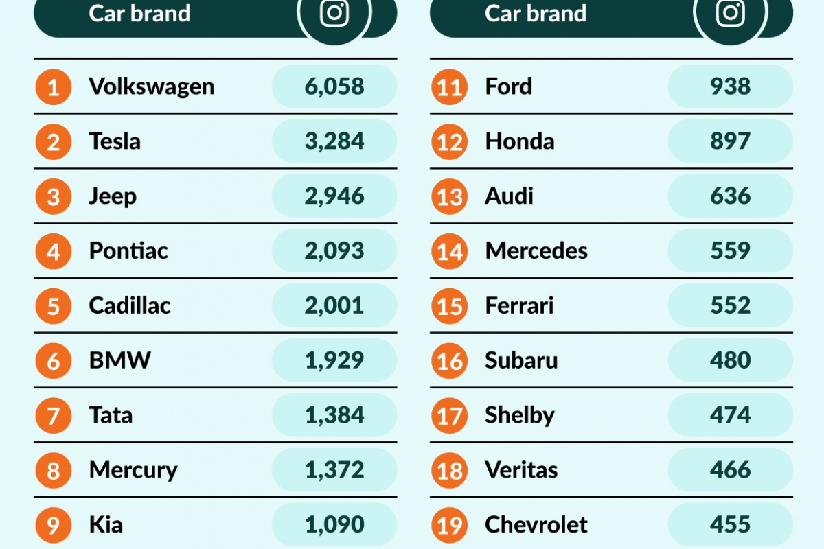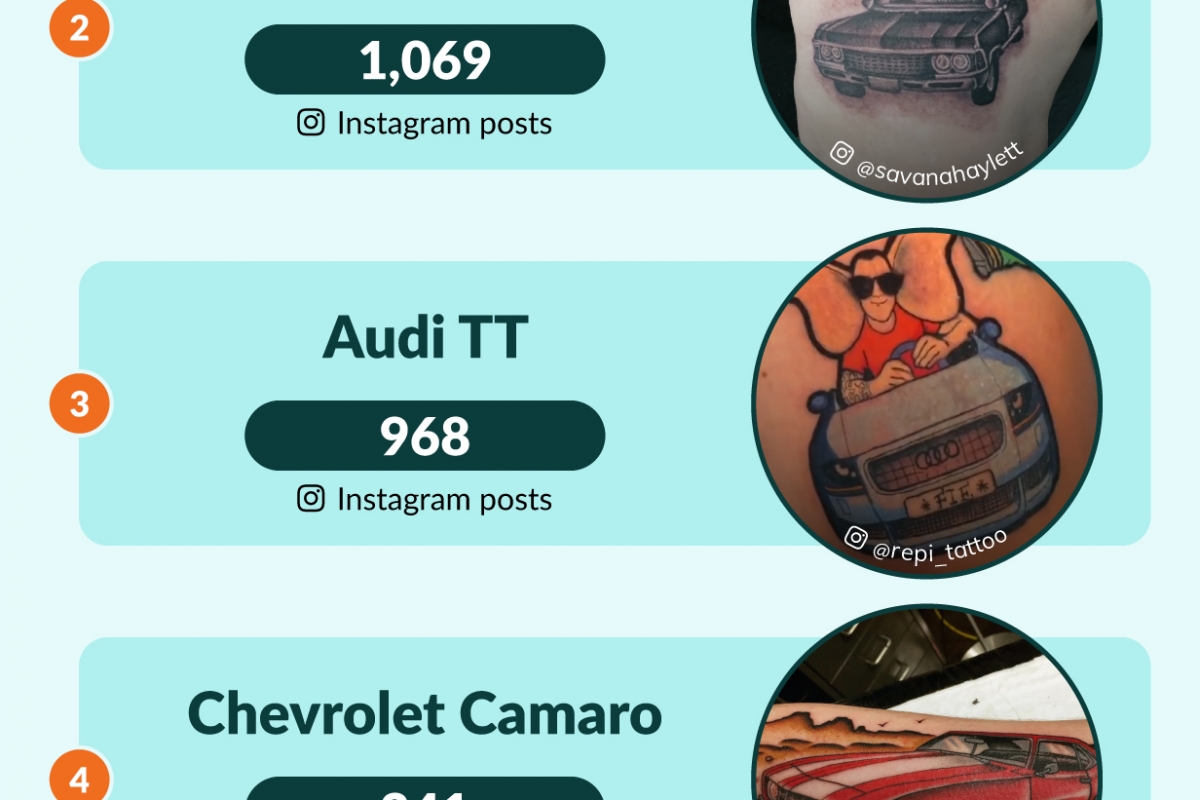 De acordo com o portal, tatuar carros nunca esteve tão na moda: foram identificados 89 construtores de automóveis com pelo menos uma publicação de tatuagem no Instagram. A pontuação média é de 305 referências, sendo que as dez marcas mais populares contam com mais de mil.