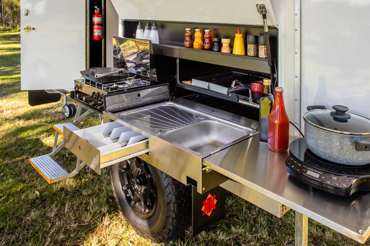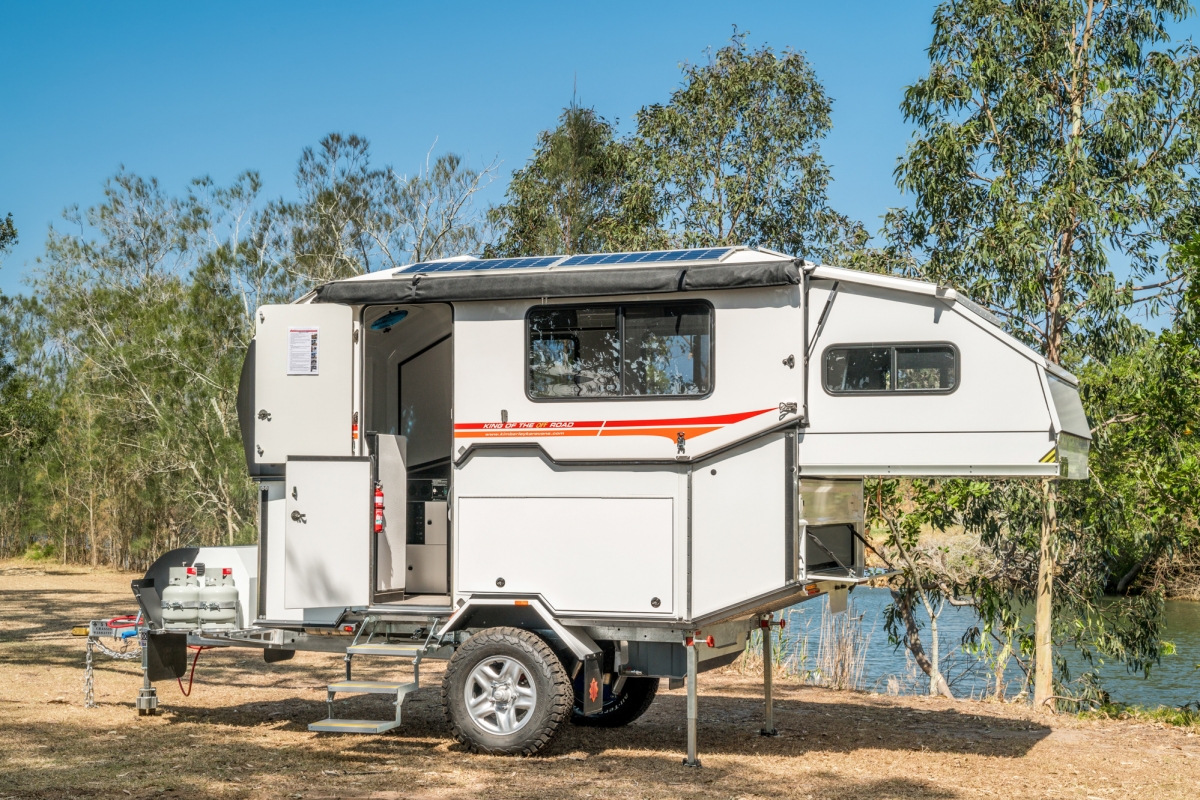 Os modelos extensíveis da empresa Kimberly Kampers pretendem combinar o melhor de dois mundos num conjunto relativamente compacto que estica quando está parado. Com um tamanho base de 5,2 metros de comprimento, 1,8 metros de largura e 2 metros em altura, a estrutura construída em materiais leves, para acusar um peso total de 1.680 kg, significando que pode ser rebocado por qualquer SUV de tamanho médio, tem secções extensíveis à frente e atrás para ganhar espaço no interior. Na regulação máxima, a caravana atinge os 6,85 metros de comprimento e 3,2 metros em altura, o suficiente para acomodar seis adultos durante a noite, numa cama de casal, duas camas individuais e mais um beliche.