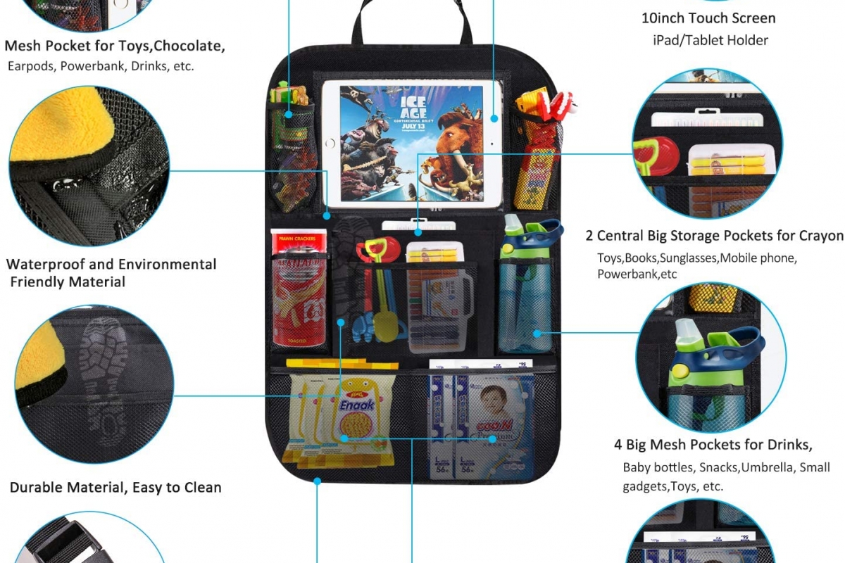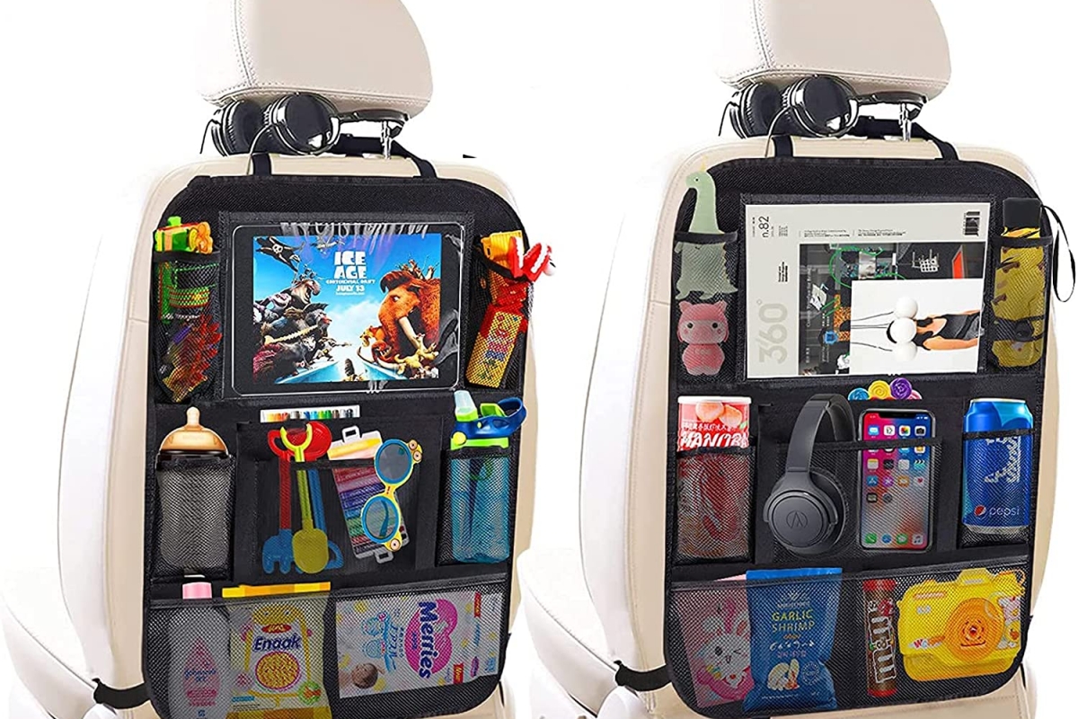 Os práticos organizadores de banco são a solução fácil e barata para acabar com o perigo dos objetos à solta no interior do carro.