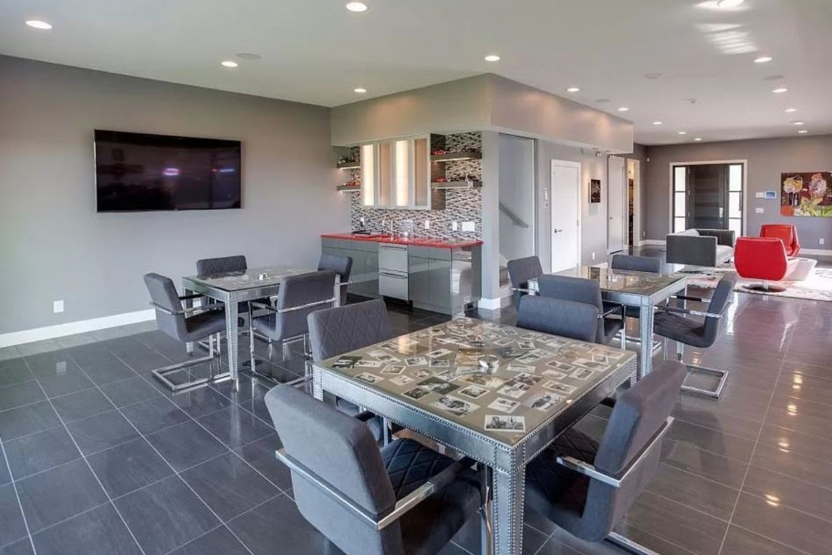 A casa tem 390 metros quadrados, com uma enorme garagem em galeria de dois andares e cozinha equipada no piso inferior e, em cima, uma requintada sala de estar, os quartos e duas casas de banho decoradas com motivos automóveis. Da sala acede-se, por escadas ou elevador, ao enorme terraço coberto com tudo o que é necessário para desfrutar em estilo de um dia intenso de corridas.