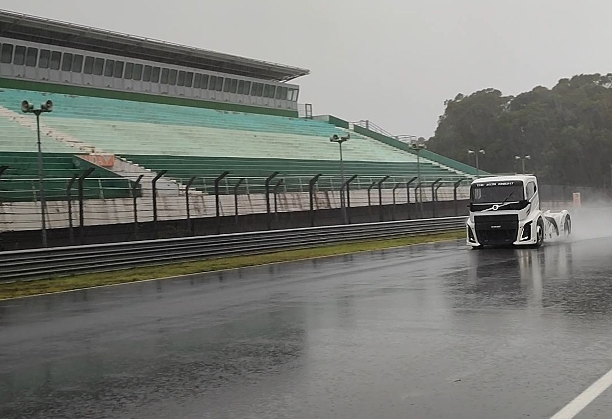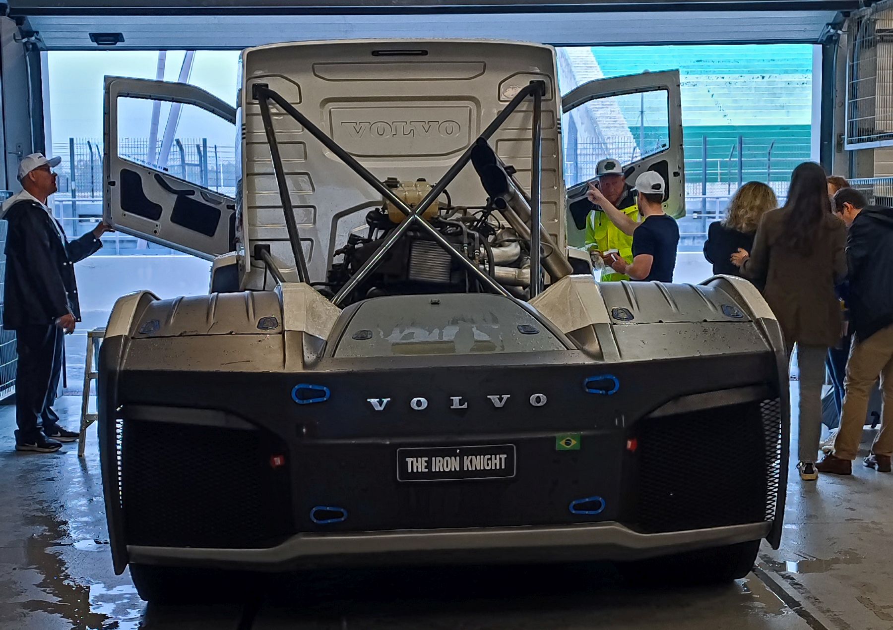 Com uma nuance: o Iron Knight não utilizou a sua potência total. Na verdade, o Iron Knight usou apenas 30% da sua potência e do binário por questões relacionadas com a tração em tais condições de chuva. E, mesmo assim, durante a curta experiência a bordo deste camião (com o ex-piloto sueco Boije Ovebrink ao volante), foi possível perceber como a motricidade estava bem aquém do desejável, lutando para colocar a potência no asfalto perante autênticos ‘rios’ que atravessavam a pista. Ainda assim, o Iron Knight é bastante rápido, sem nunca fazer esquecer a sua opulência e musculatura, até mais intimidante pelas condições do piso.