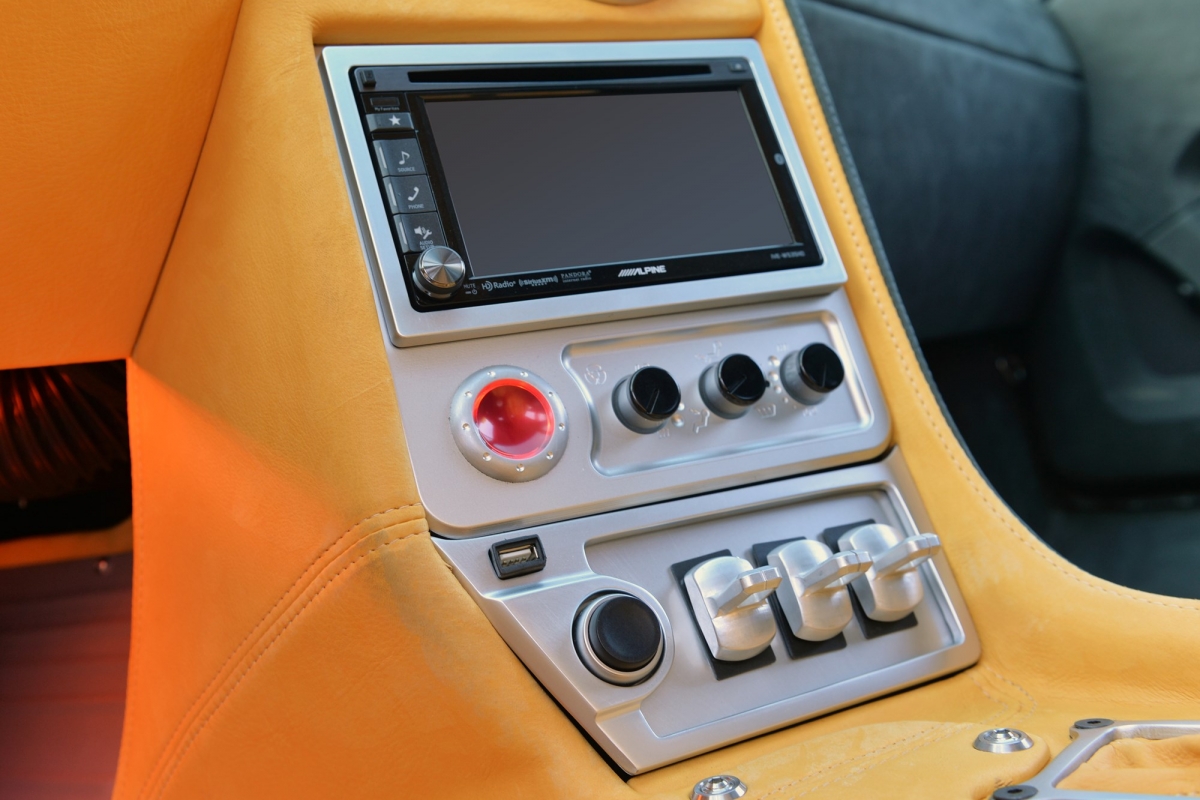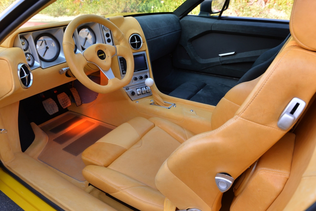 O interior é atípico, para dizer o mínimo. Desenhe uma linha (na sua cabeça) ao longo do meio do habitáculo. Todo o lado esquerdo, do lado do condutor, é revestido a pele amarela. A outra metade tem acabamento em pele preta. Devemos esta estranha combinação de cores à Nike, que colocou o seu cunho no volante para este projeto. O ADRNLN está equipado com bancos Recaro. A consola central está virada para o condutor e possui um pequeno ecrã. O painel de instrumentos analógico adopta um estilo art deco, com indicadores grandes e organizados com fundo branco. O volante de 3 raios é da Momo.