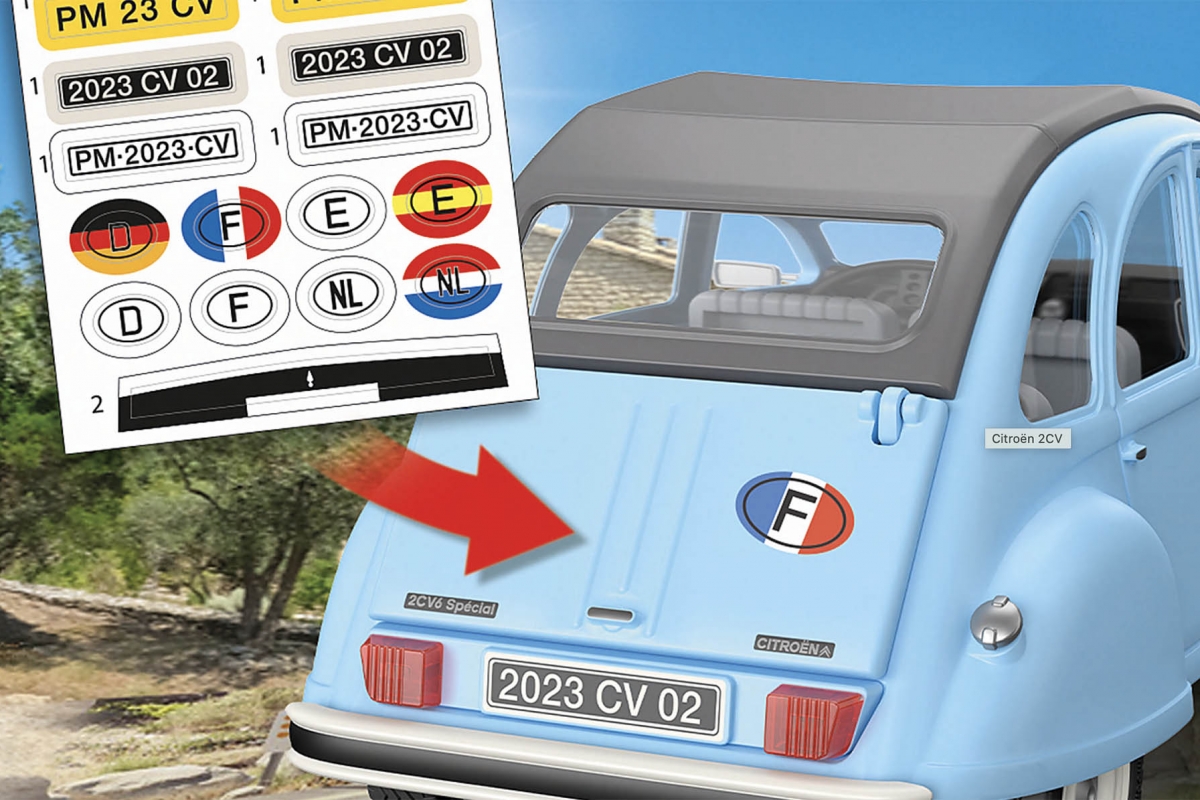 De acordo com a Citroën, o 2 CV simboliza uma era plena de vida, uma verdadeira art de vivre, ao ponto de, por vezes, se tornar numa estrela de cinema. “Este espírito alegre reflete-se no tom azul celeste do 2 CV “Playmobil” e nos acessórios que o complementam: um agricultor acompanhado pelos seus gansos, um porco e as suas vasilhas de leite, que evocam o campo, um motorista em traje de marinheiro de estilo hippie e, finalmente, um polícia, numa referência ao famoso marechal Cruchot de uma popular série de filmes franceses”, refere a marca.