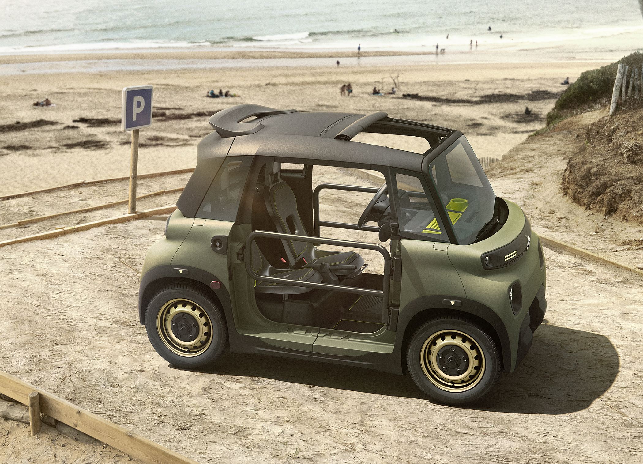 Com visual aventureiro, o My Ami Buggy representa a liberdade de movimentos e o espírito das férias, com o seu interior aberto ao exterior. Em vez das tradicionais portas apresenta portões metálicos tubulares, o tejadilho também desapareceu, surgindo uma capota macia amovível para aproveitar ao máximo os grandes espaços abertos.