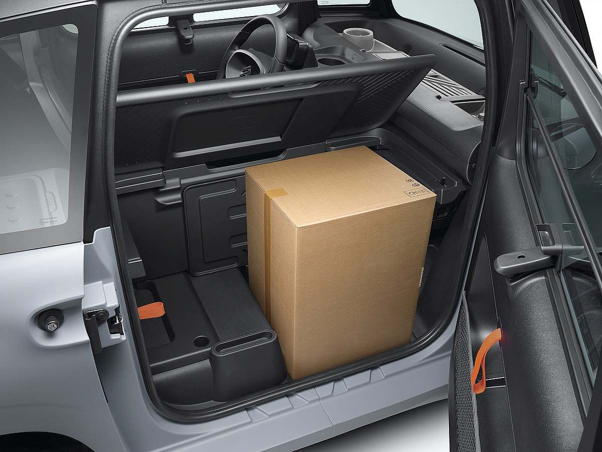 Apresentado como um modelo revolucionário para a mobilidade elétrica de baixo custo, o Citroën Ami terá igualmente uma versão comercial para as entregas urbanas sem emissões, com um volume útil de carga superior a 400 litros e capacidade de carga útil de 140 kg, tirando partido de um espaço modular otimizado no lugar do assento do passageiro.
