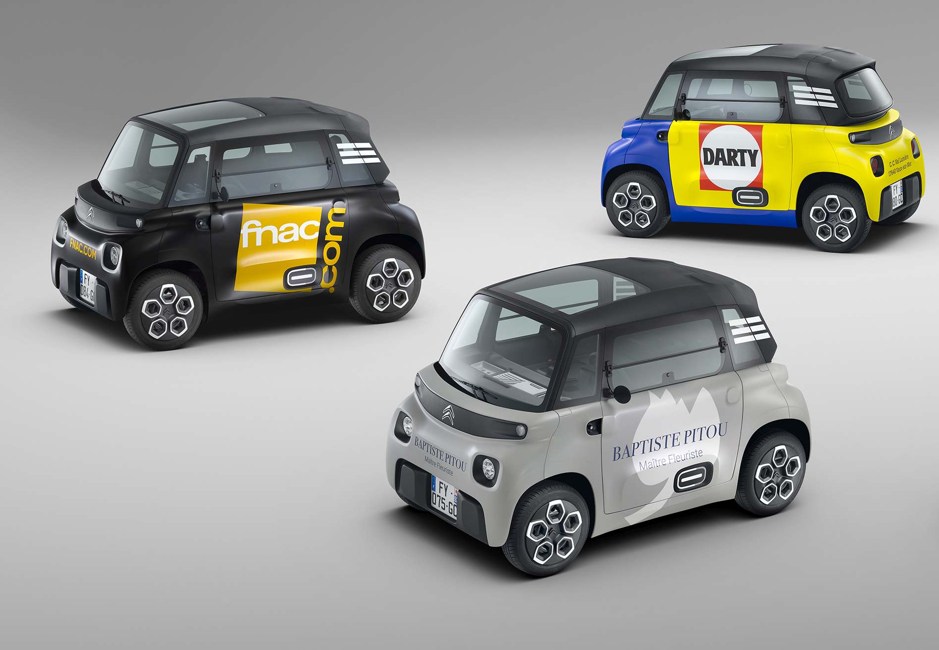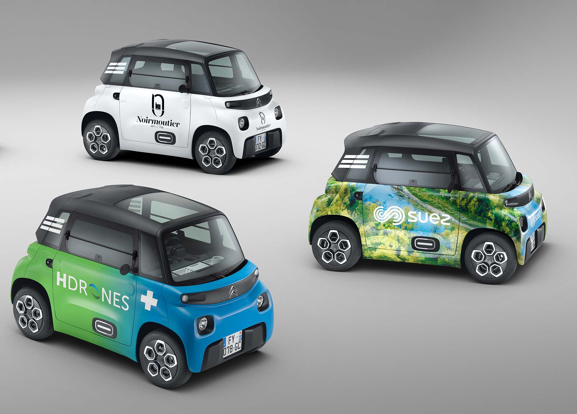 Para transmitir a imagem das suas empresas através do My Ami Cargo, os clientes vão poder, em breve, levar a personalização exterior ao passo seguinte. As frotas com menos de dez veículos vão poder colocar o logótipo dos seus negócios na carroçaria dos My Ami Cargo. Para frotas com mais de dez veículos, os reparadores Citroën podem, antes da sua entrega, pintar a carroçaria na cor pretendida, aplicar o logótipo sob a forma de autocolante ou, ainda, cobri-lo, integralmente, com as cores e mensagem da empresa.