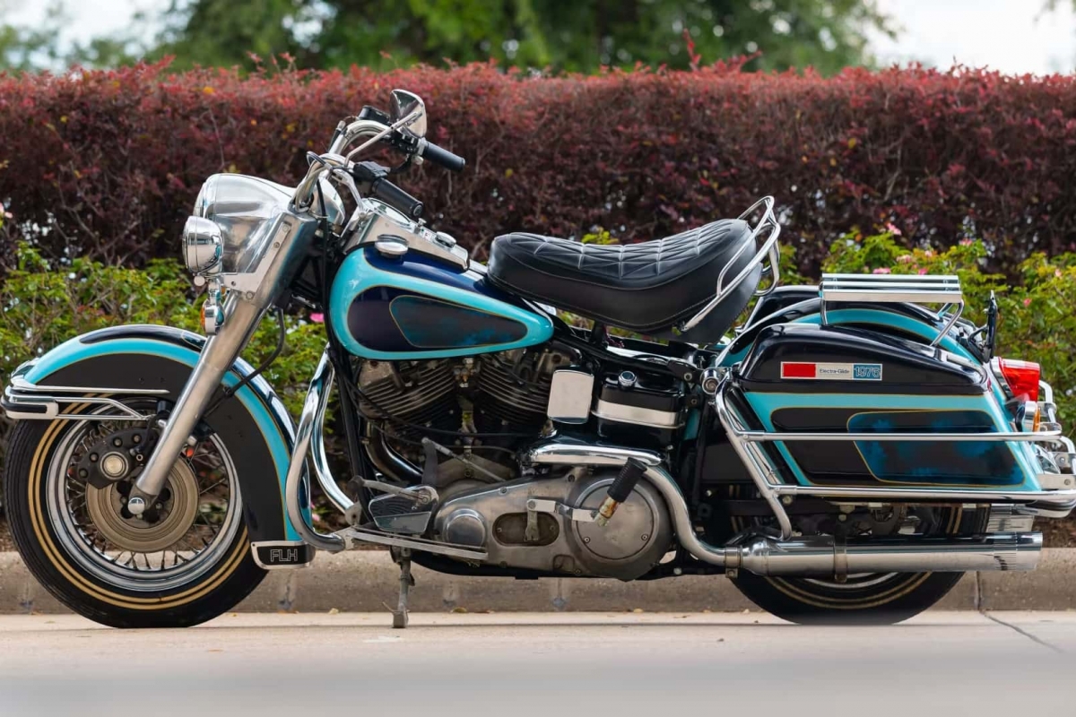 De acordo com a leiloeira Mecum, Elvis revendeu a FLH a um concessionário Harley-Davidson cerca de três meses antes da sua prematura morte. No odómetro regista apenas 2.029 quilómetros!