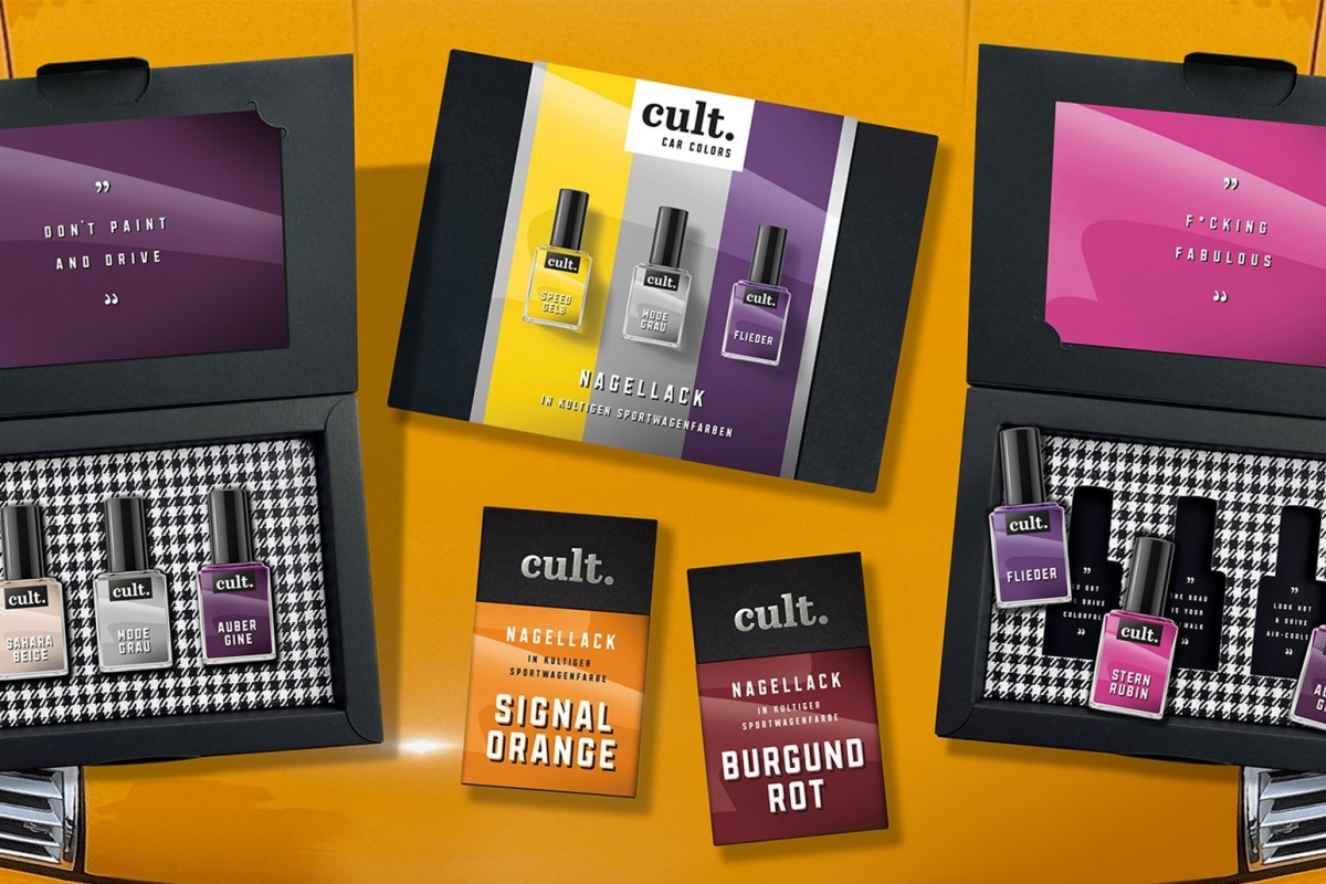 Para mulheres e homens que acompanham a última tendência masculina, Ulrike Clormann, uma apaixonada confessa por automóveis clássicos, criou a oferta da Cult Car Colors, um conjunto de vernizes amigos do ambiente, concebidos à base de ingredientes naturais a partir de uma base orgânica com até 80% de componentes minerais e livres dos 14 ingredientes nocivos que habitualmente se utilizam nos esmaltes para unhas.