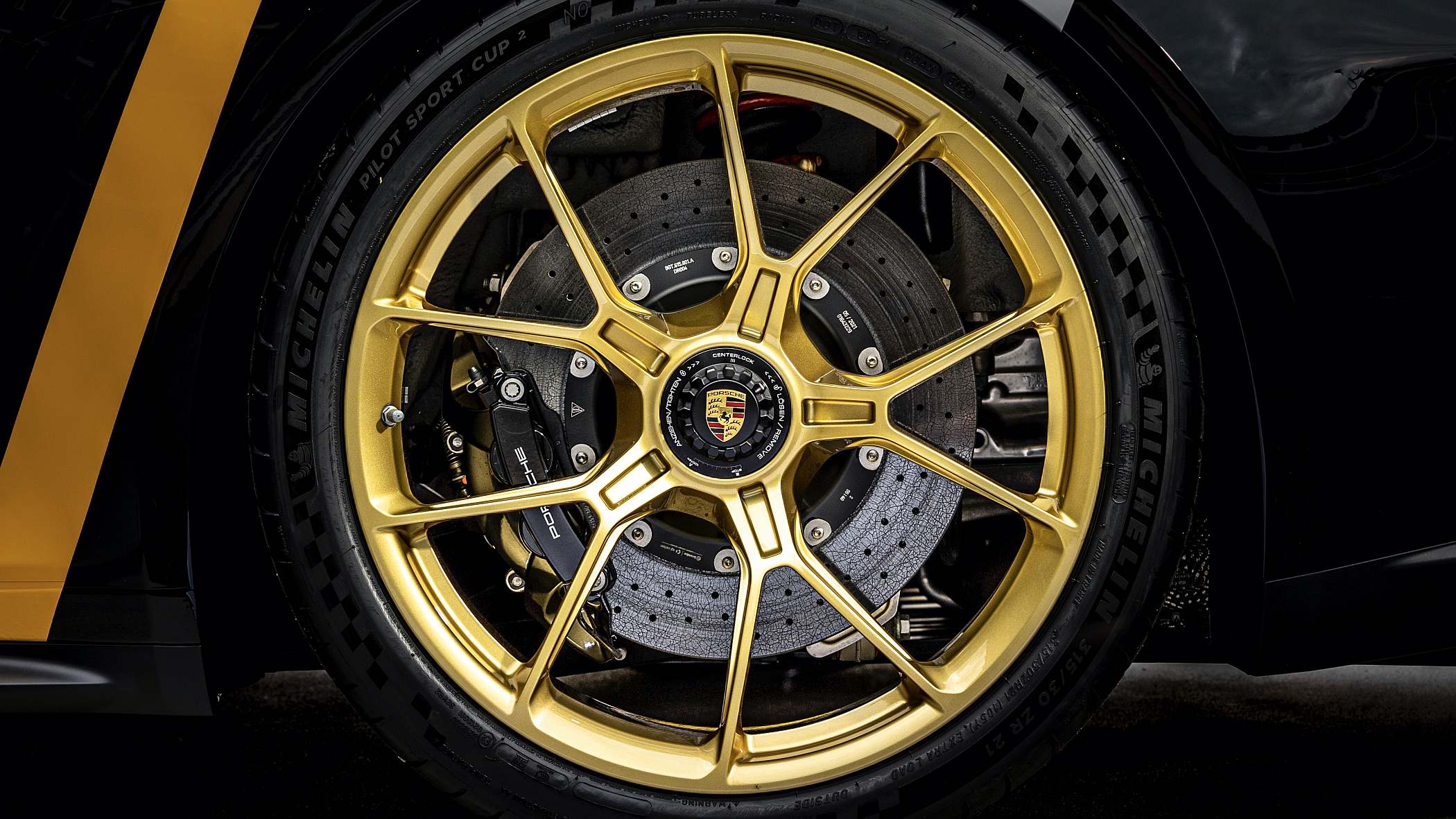 “Na década de 1980 tive a possibilidade de pilotar o incrível Porsche 956, um carro icónico em termos de performance e beleza. A interpretação de alguns elementos num GT3 moderno torna essa memória excitante e vital – para mim e para as pessoas que me são próximas”, explica Barilla, para quem a decoração do Porsche de competição era condição fundamental para esta réplica. Além das cores, outros pontos remetem para o 956 de Le Mans, como o desenho das jantes de aperto central, diferentes nas suas cores – no eixo dianteiro, as jantes são pintadas de branco, enquanto no traseiro são douradas.