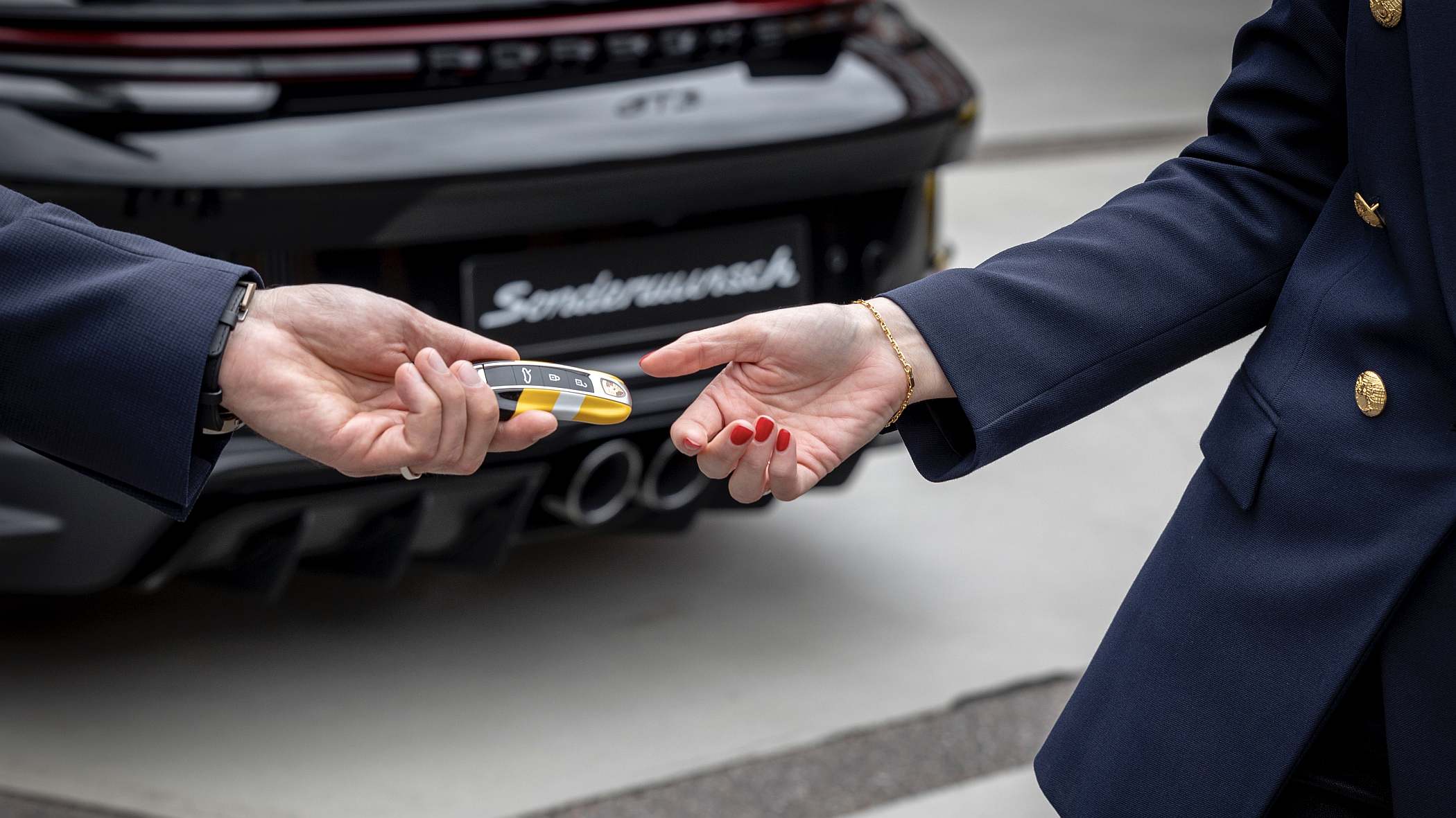 Porém, o trabalho de personalização em termos de imagem não foi, meramente, uma questão de aplicação de vinis ou grafismos. Grant Larson, atual Diretor de Projetos Especiais do centro de design da Porsche, explica que a transferência do grafismo do 956 para o 911 GT3 foi um autêntico desafio, uma vez que o carro de competição era basicamente dominado por zonas planas e o 911 GT3 substancialmente mais arredondado nas suas linhas.
