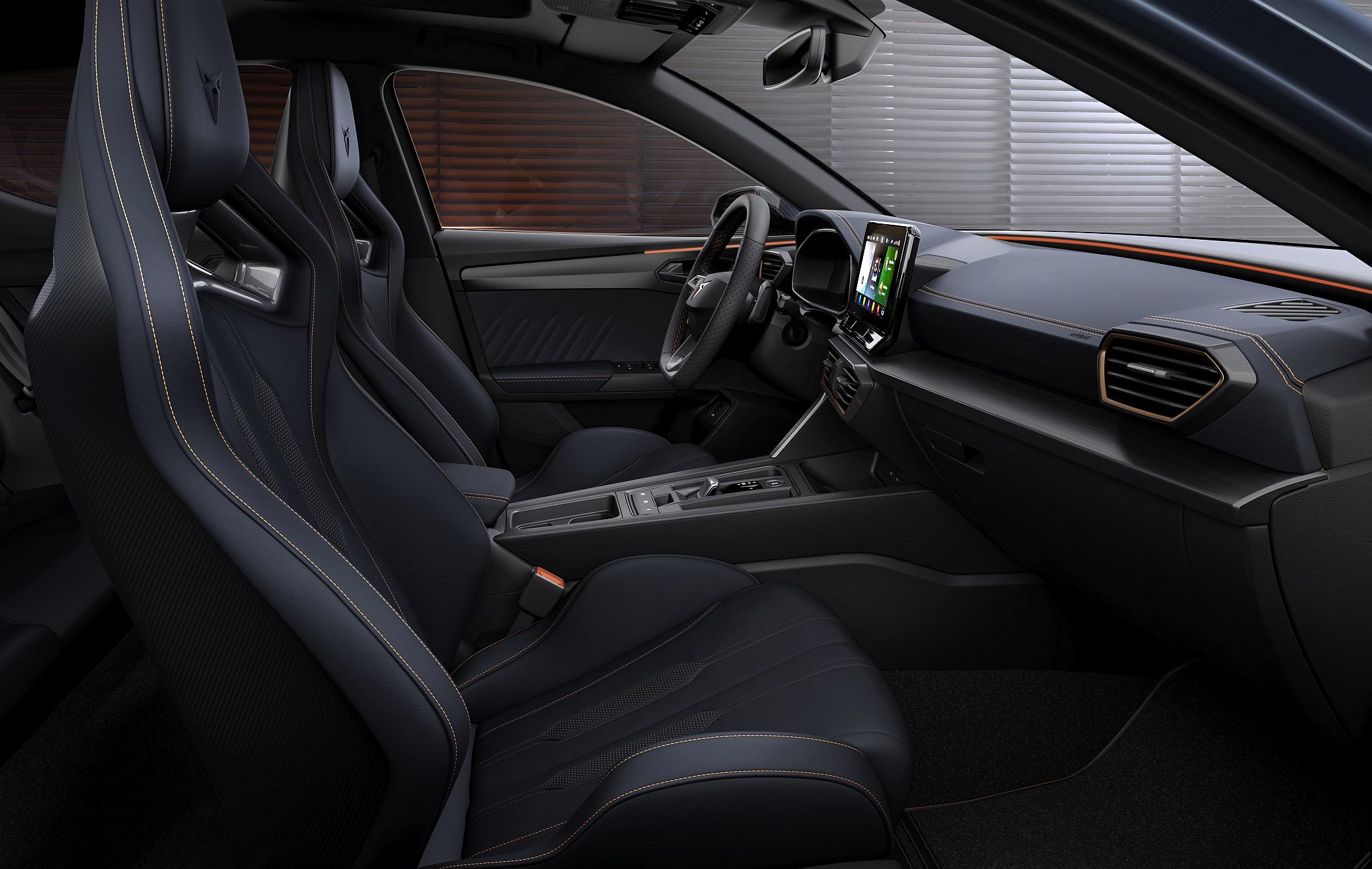 O Leon VZ adiciona elementos inspirados nos veículos de alta performance, destacando-se os bancos ‘CUPbucket’, disponíveis em couro ‘Dark’ ou ‘Petrol Blue’. Os assentos ‘CUPbucket’ são montados na parte baixa do habitáculo para maximizar o espaço e proporcionar uma posição de condução mais ergonómica.